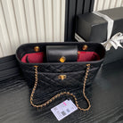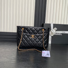 24K Shopping Bag 28cm Black Calfskin Gold Hardware