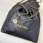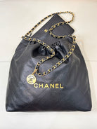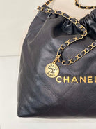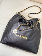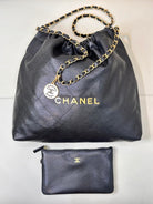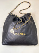 CC 22 Hobo Bag 42cm Black Grained Calfskin Gold Hardware