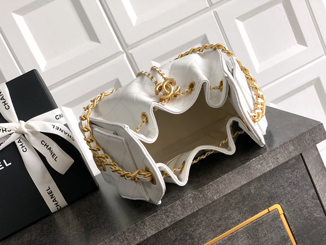 CC 25C Hobo Bags 20cm White Grained Calfskin