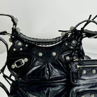 LE CAGOLE SMALL SHOULDER BAG 26 WITH RHINESTONES IN BLACK ARENA LAMBSKIN SILVER HARDWARE