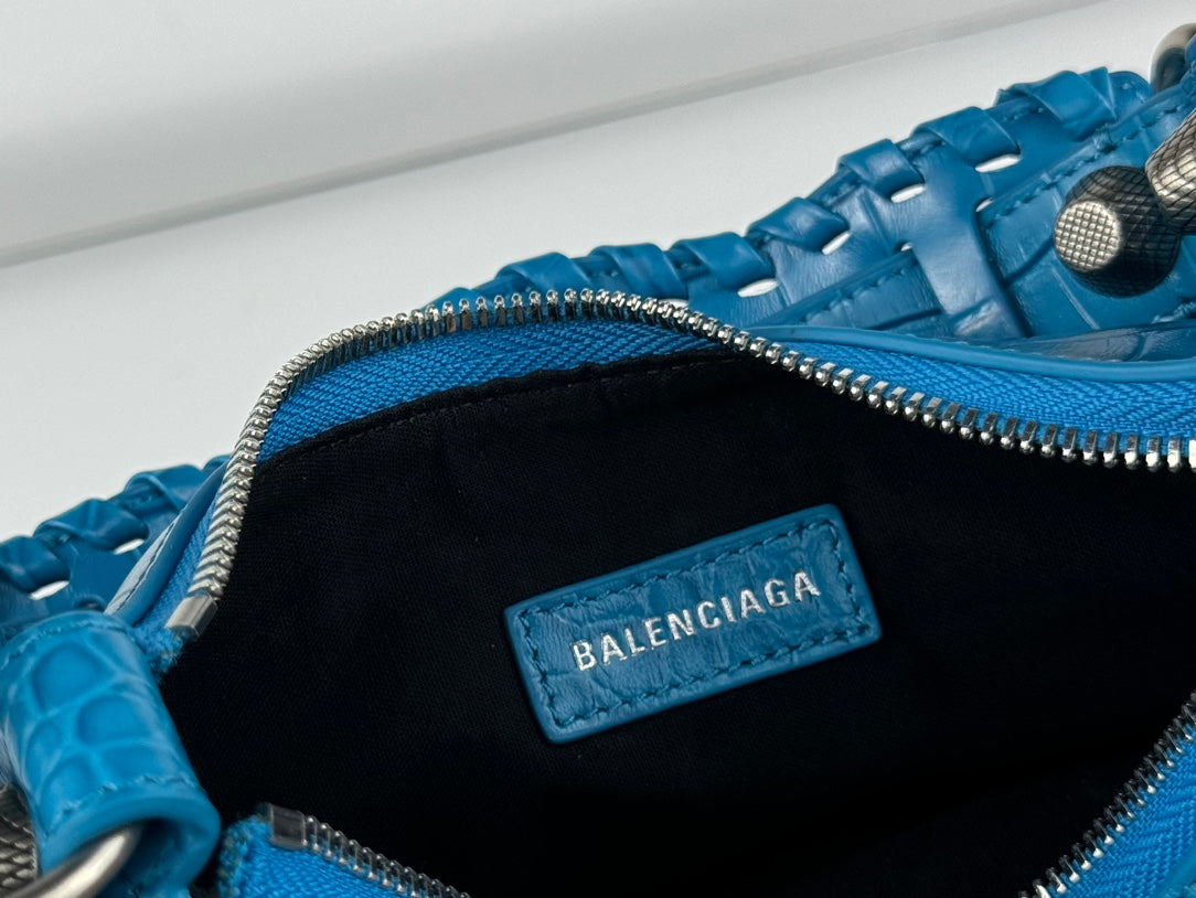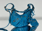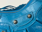 LE CAGOLE SMALL SHOULDER BAG 26 WITH RHINESTONES IN DODPER BLUE CROCODILE EMBOSSED CALFSKIN