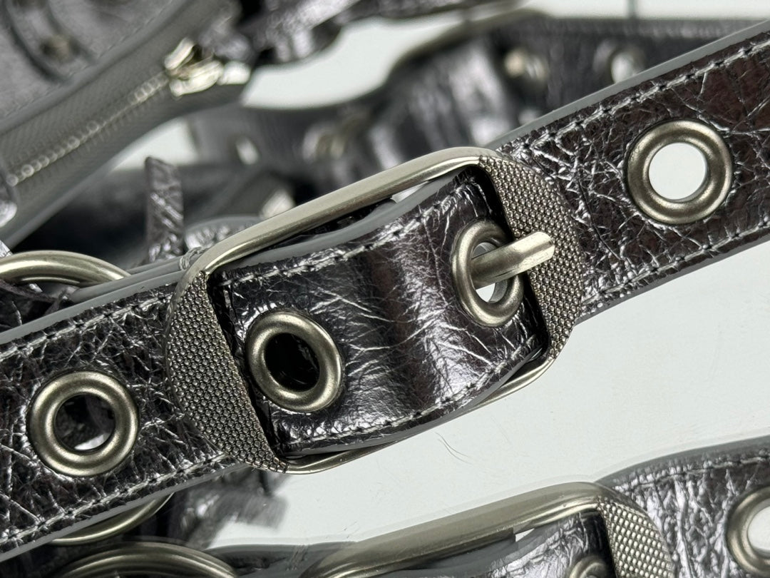 LE CAGOLE SMALL SHOULDER BAG 26 WITH RHINESTONES IN SILVER METALLIC ARENA LAMBSKIN
