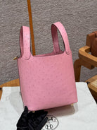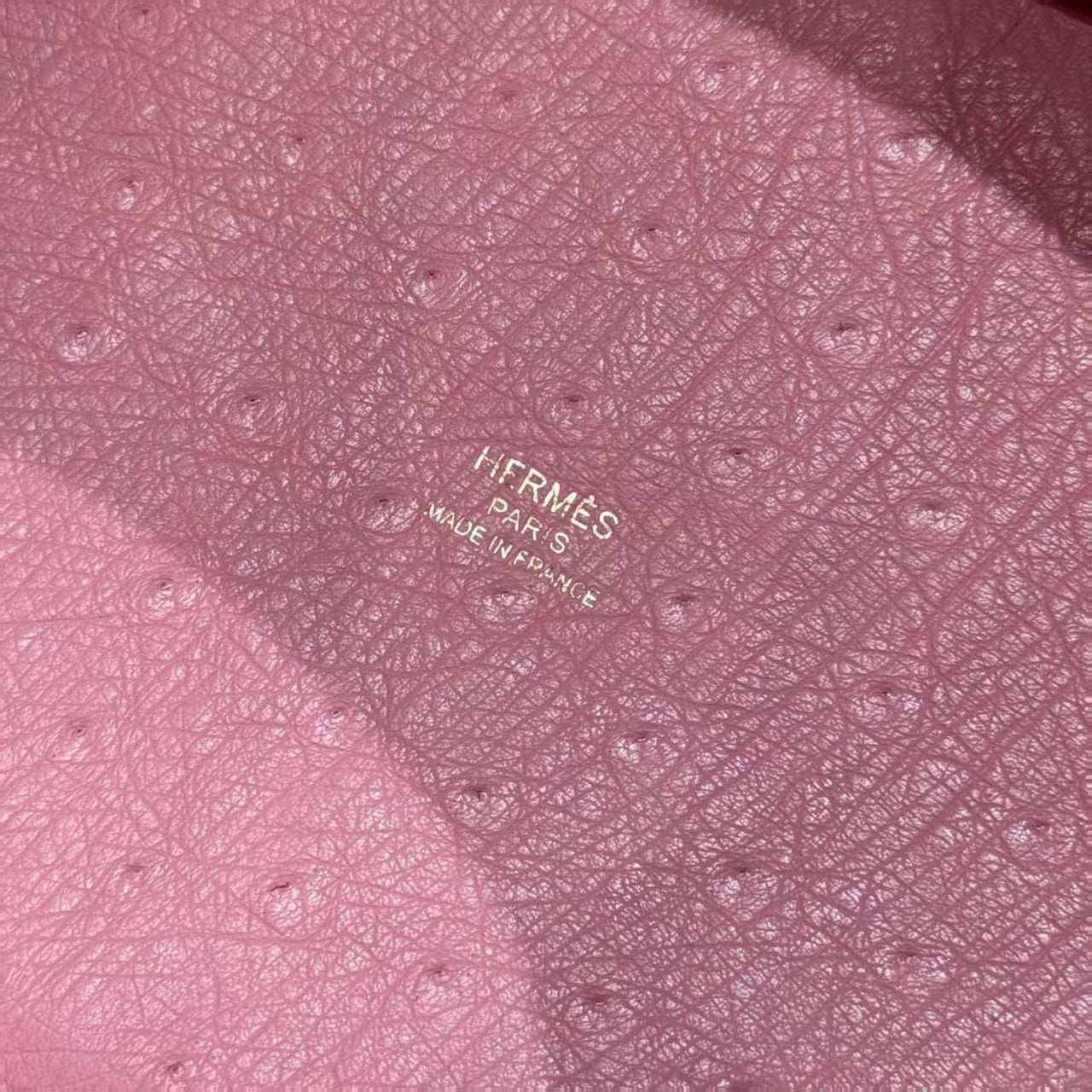 Picotin Lock Pink Ostrich Gold Hardware