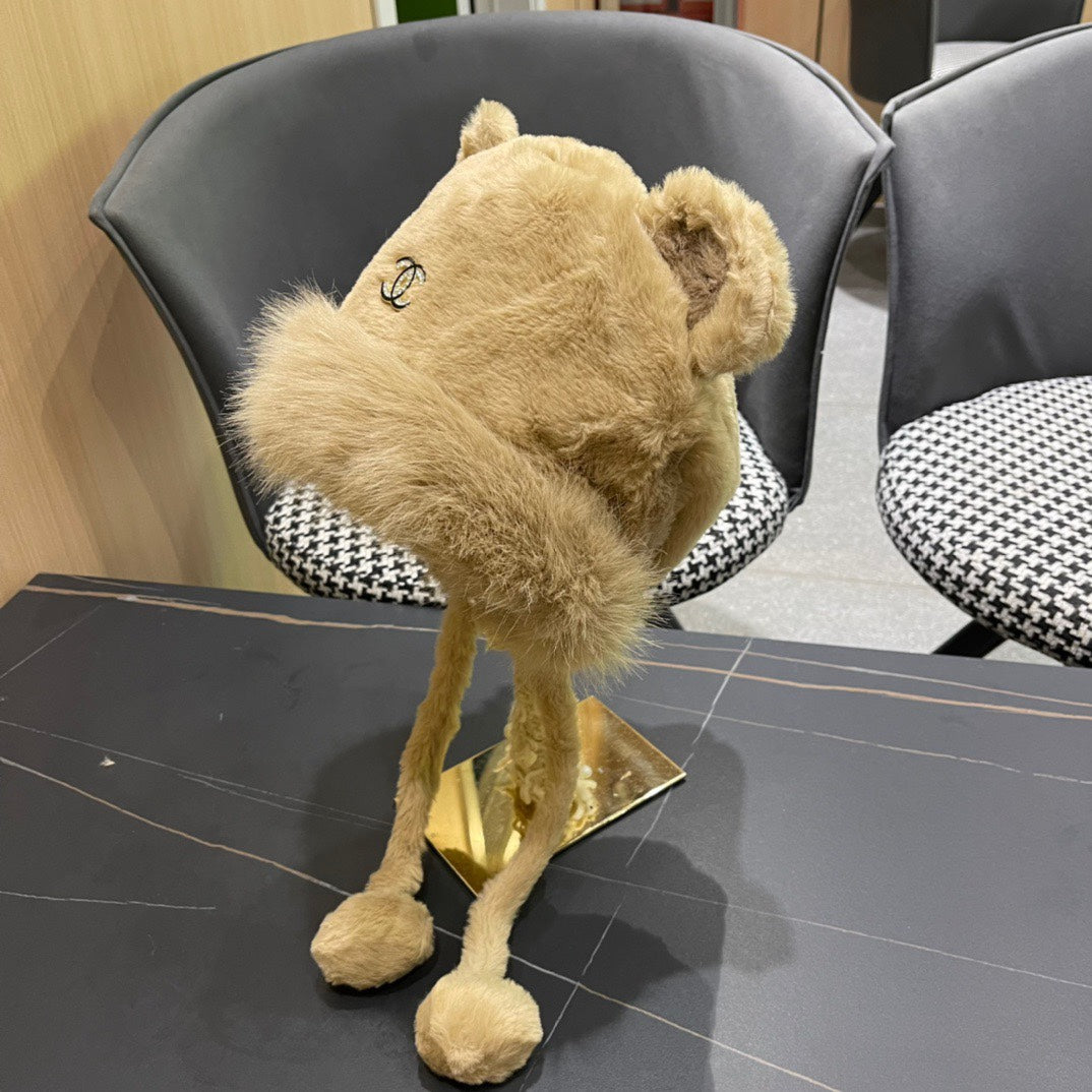 • Women's Hat with plush material and pom-pom design, featuring cute bunny ears, ideal for winter.