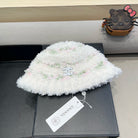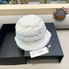 • Stylish plush bucket hat for women, suitable for autumn and winter, designed for warmth with a mixed-color look.