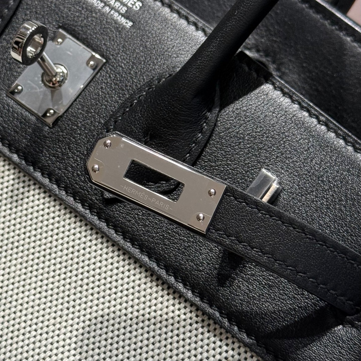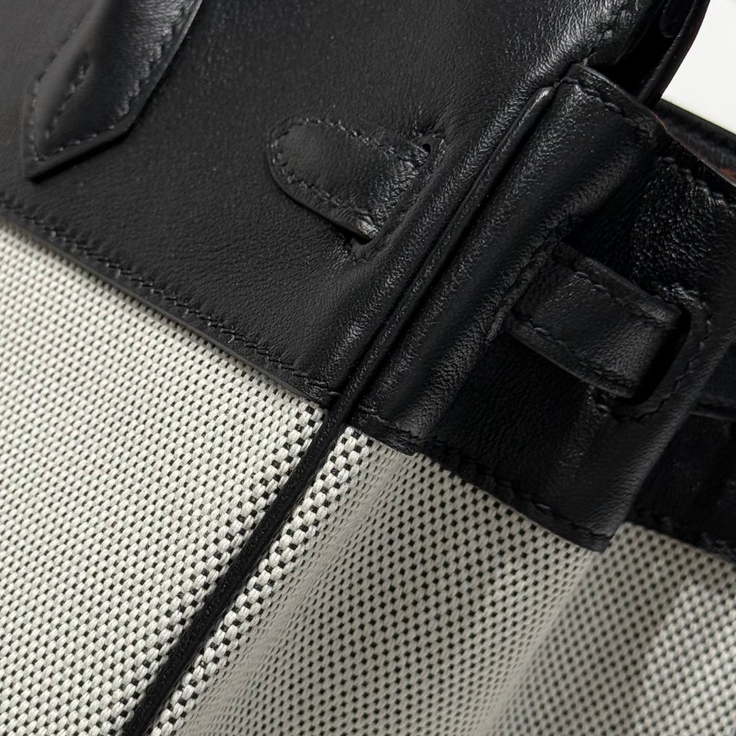 HM Birkin 25cm Black Swift Dark Grey Canvas Silver Hardware