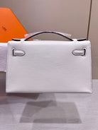 HM KELLY POCHETTE 22CM WHITE SWIFT GOLD HARDWARE