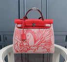 HM HERBAG ZIP 31 RED AND WHITE HORSE MOTIF CANVAS