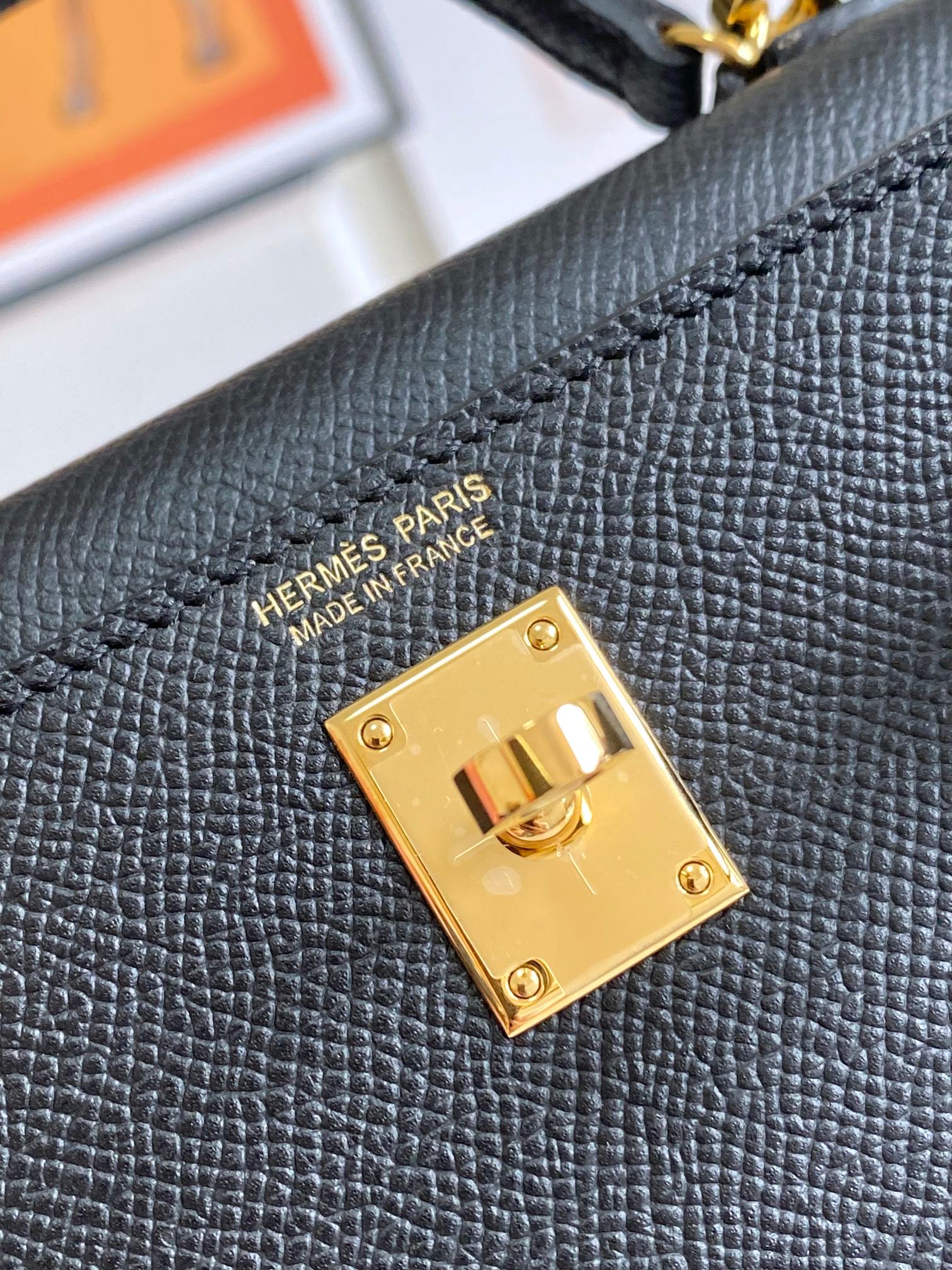 HM Mini Kelly 19cm Black Epsom Gold Hardware