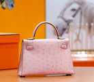 HM Mini Kelly 19cm Pink Ostrich Gold Hardware