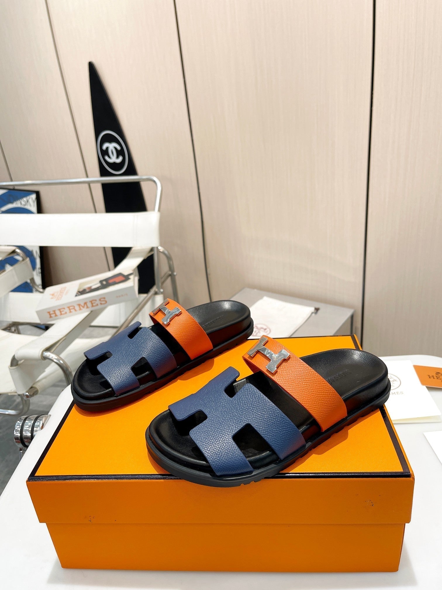 HM CHYPRE SANDAL INDIGO AND TIGER WITH H-BUCKLE CALFSKIN