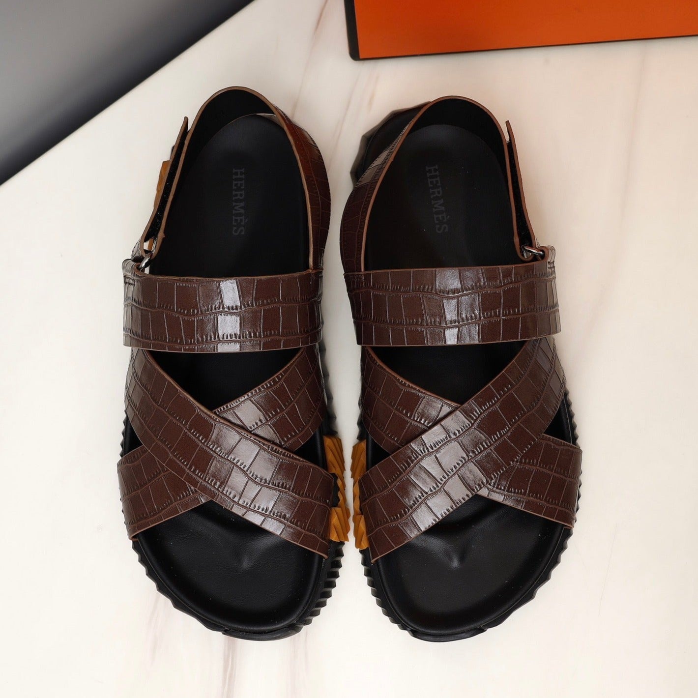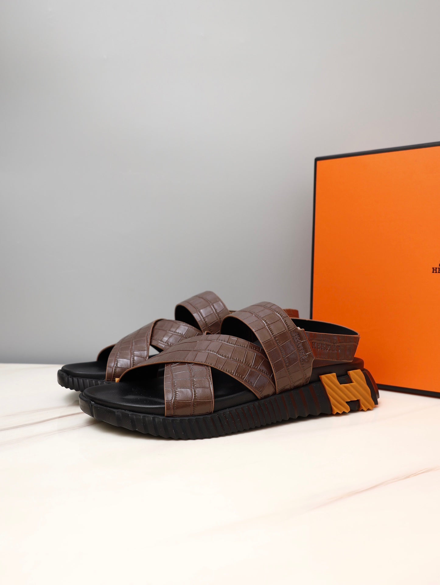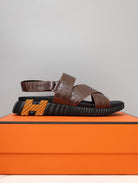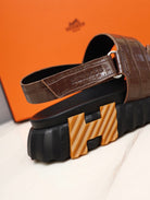 HM ELECTRIC CROCODILE MOTIF SANDAL SYRUP CALFSKIN