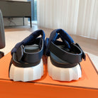 HM ELECTRIC SANDAL COBALT FABRIC AND CALFSKIN