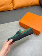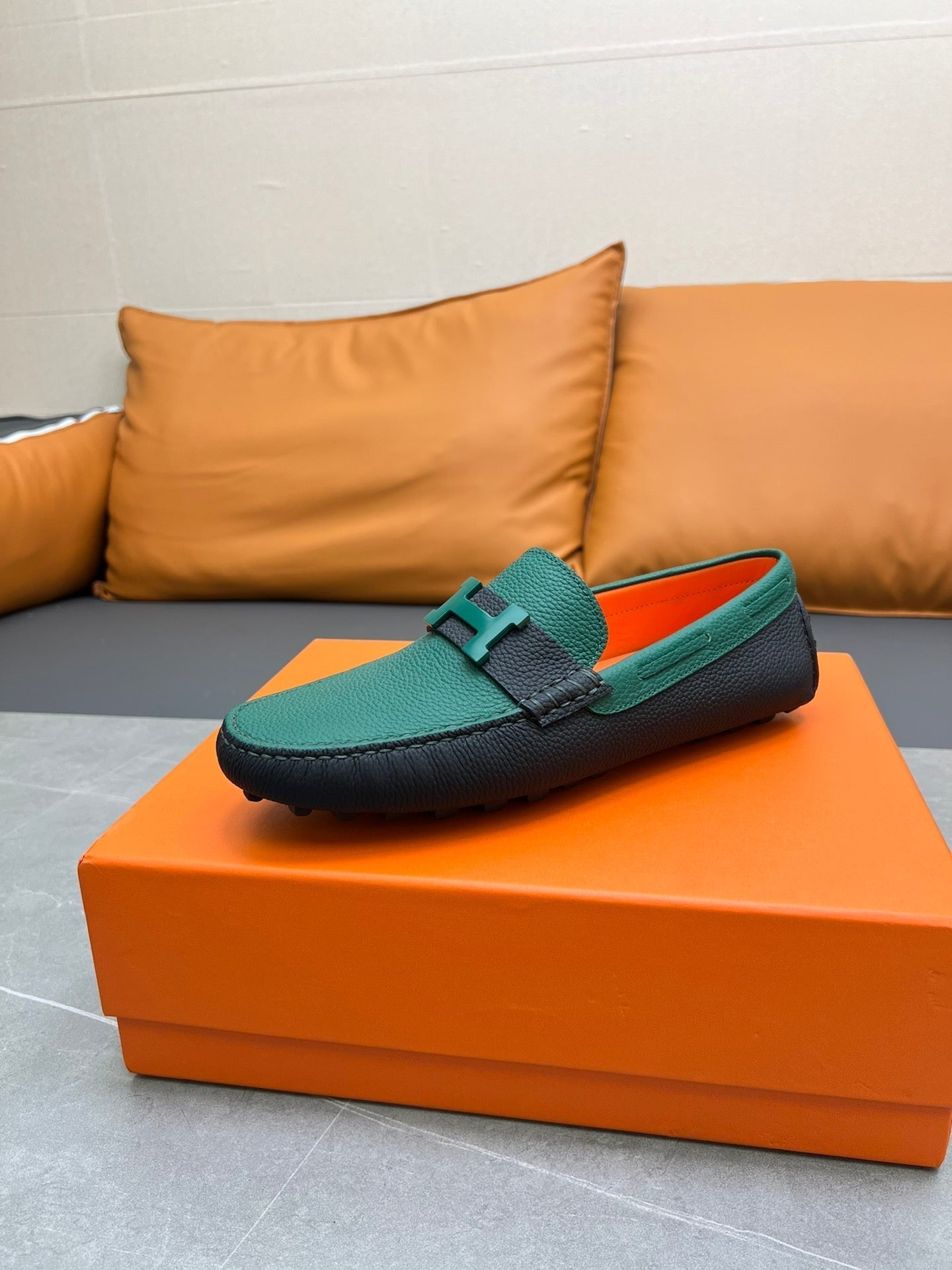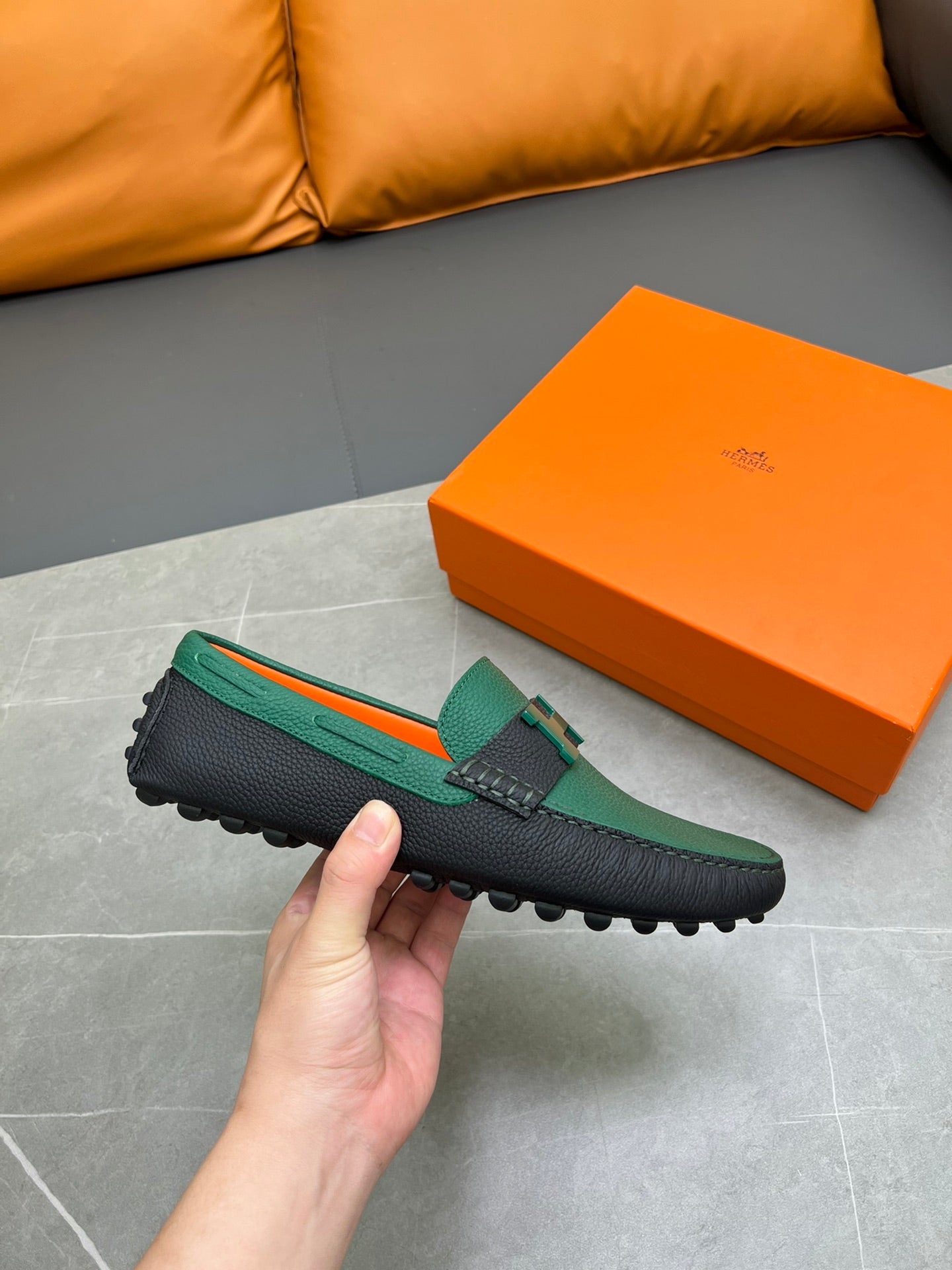 HM H-LOGO LOAFER PINE GREEN AND BLACK CALFSKIN