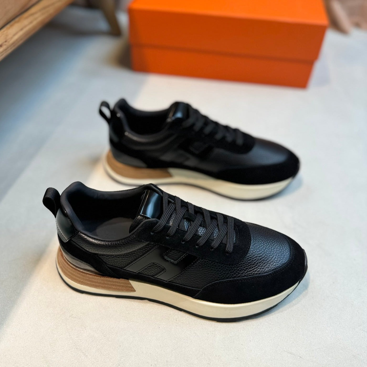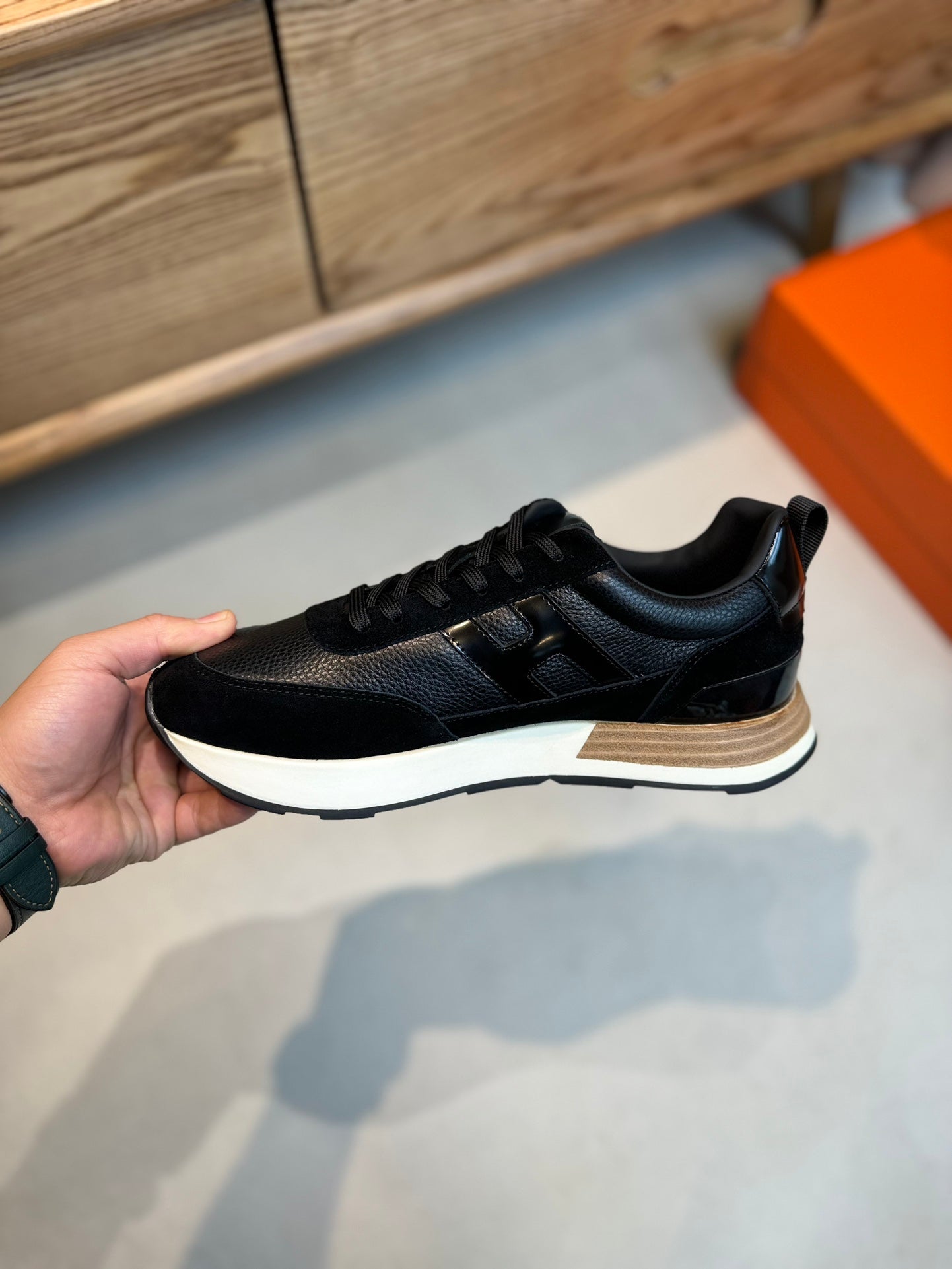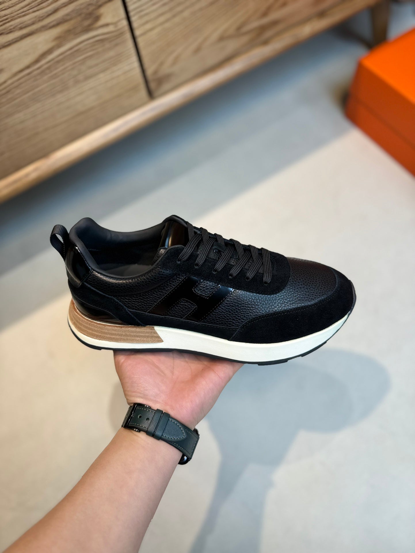 HM INTERACTIVE LACE-UP SNEAKER BLACK CALFSKIN