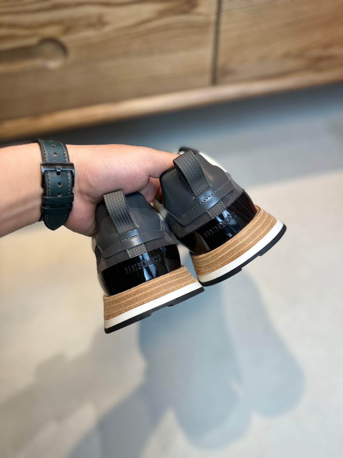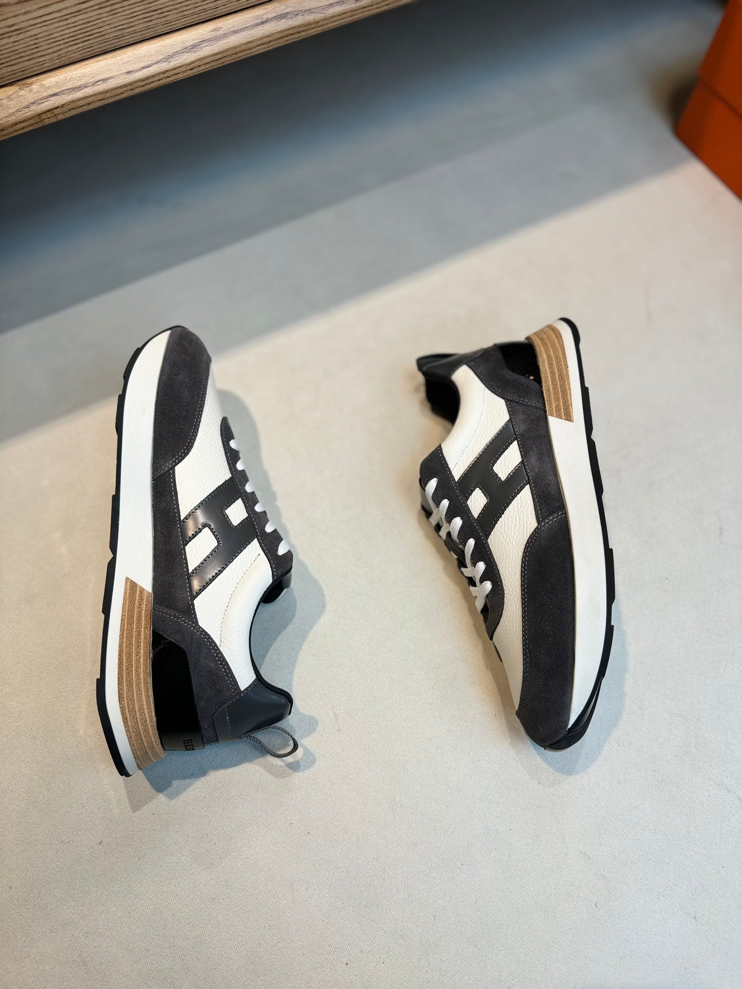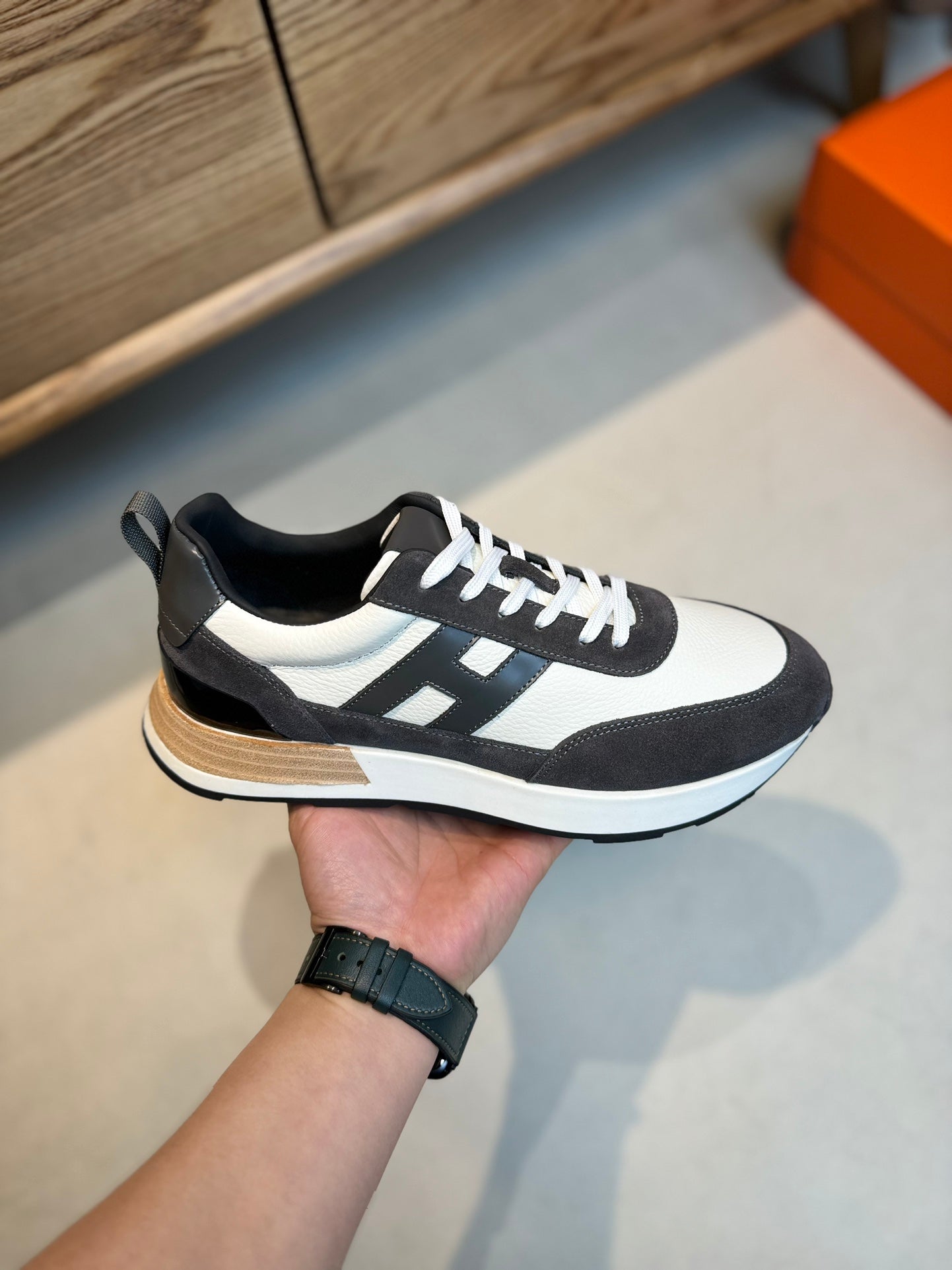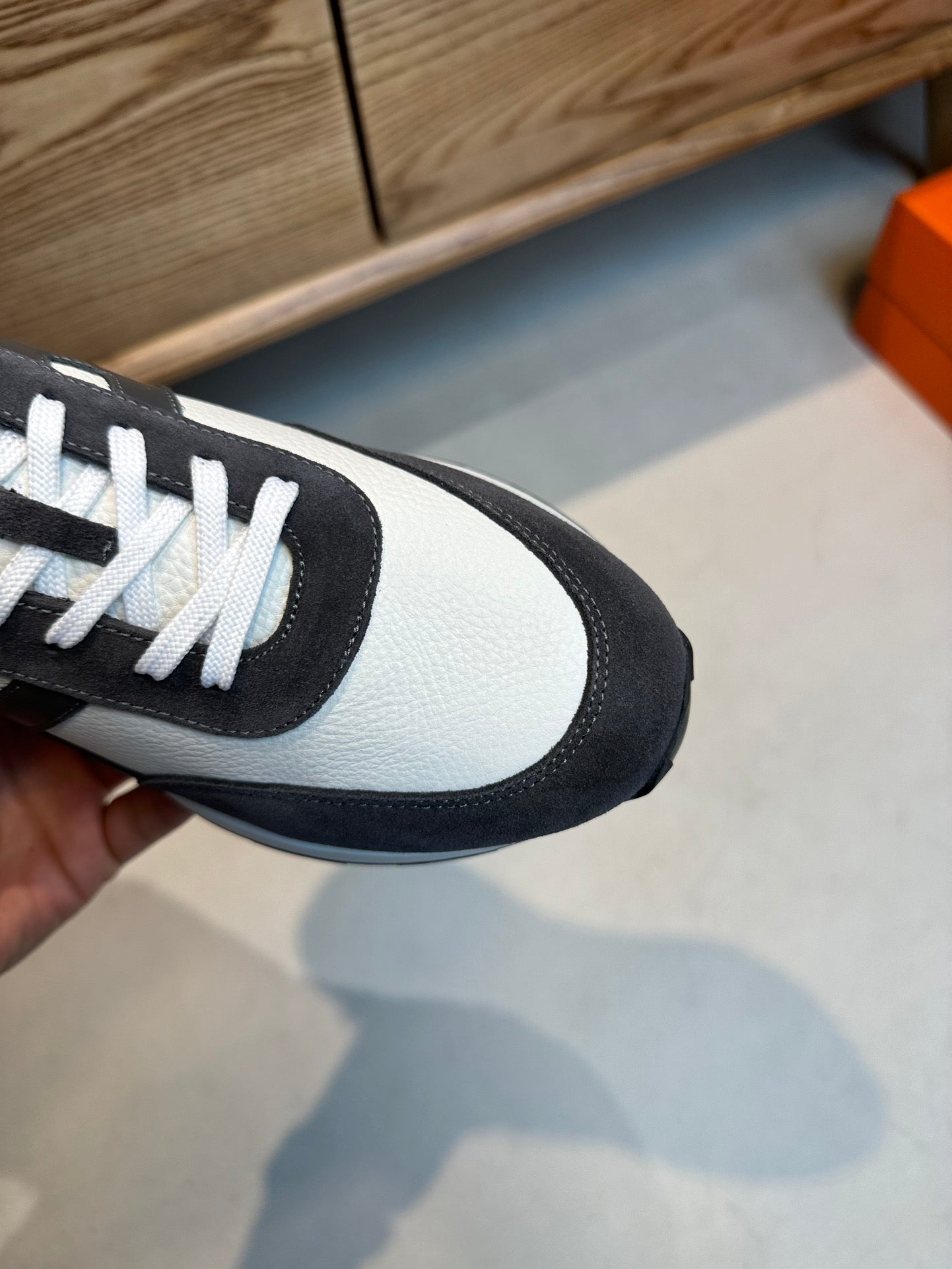 HM INTERACTIVE LACE-UP SNEAKER GRAY AND WHITE CALFSKIN