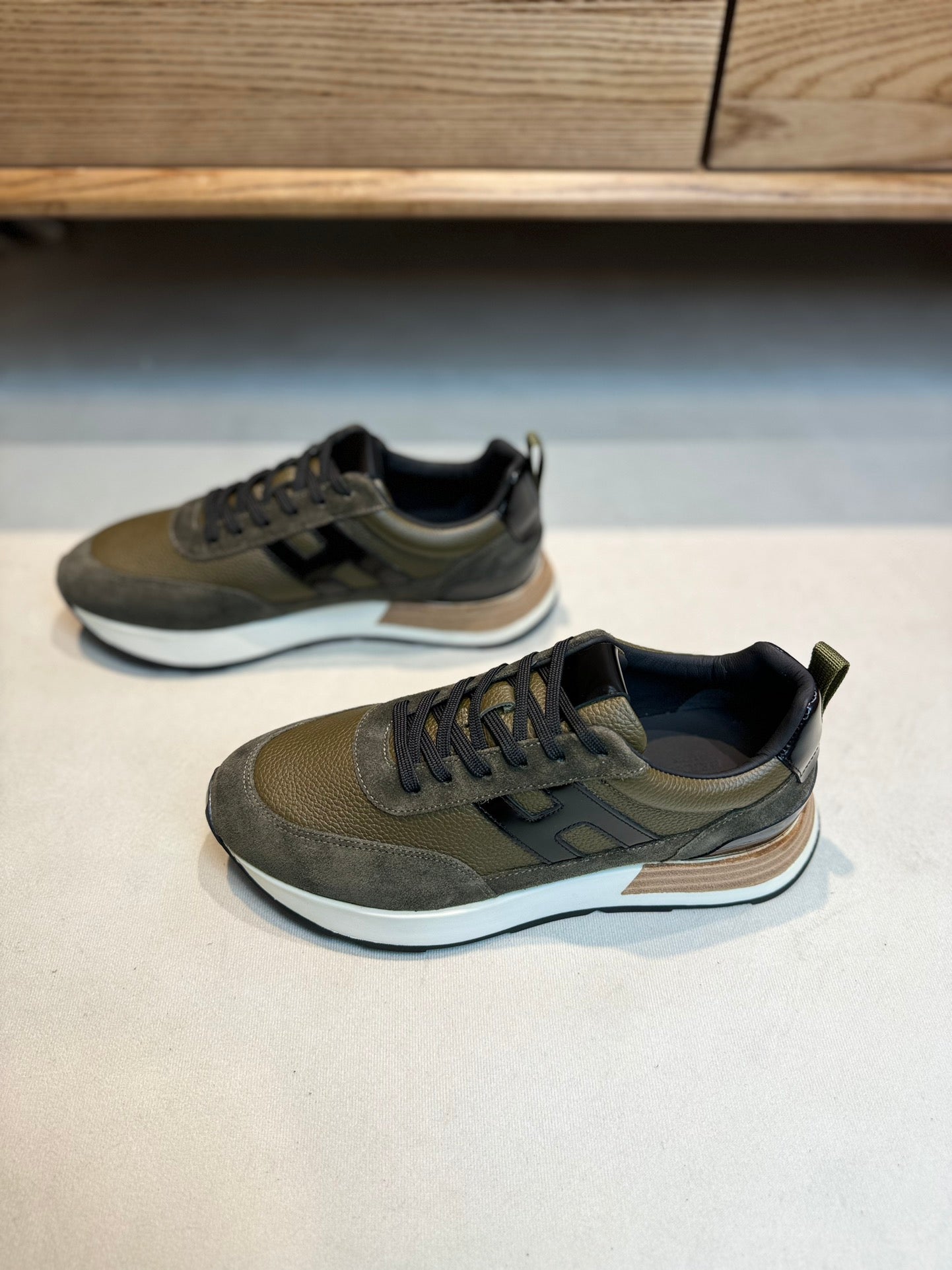 HM INTERACTIVE LACE-UP SNEAKER OLIVE CALFSKIN
