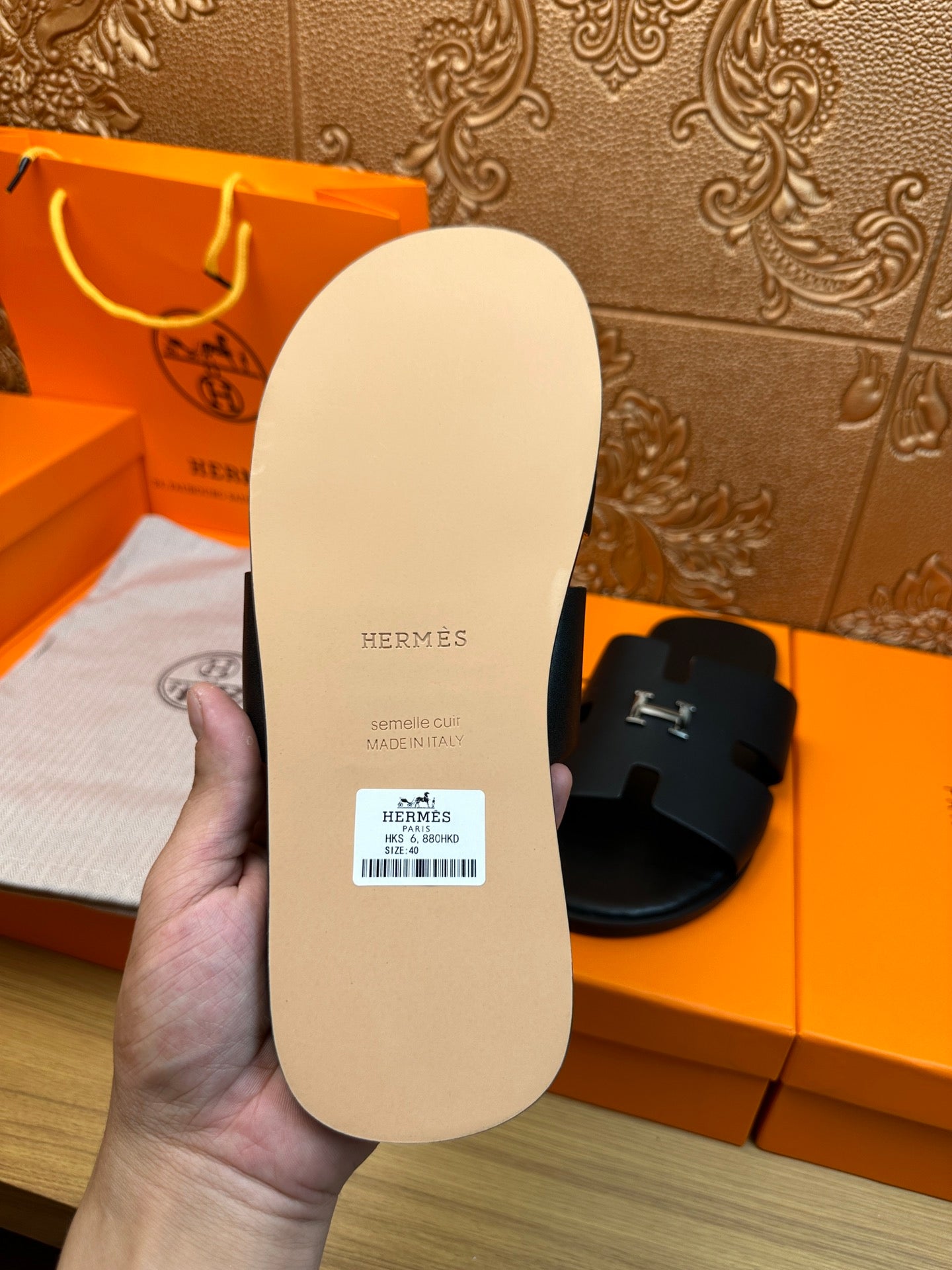 HM IZMIR H-BUCKLE SANDAL BLACK CALFSKIN