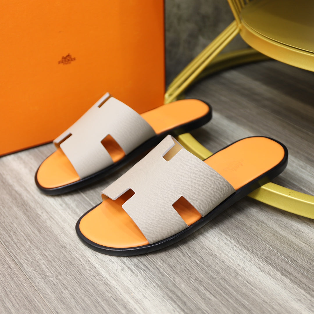 HM IZMIR SANDAL TANGERINE AND PALE GRAY CALFSKIN