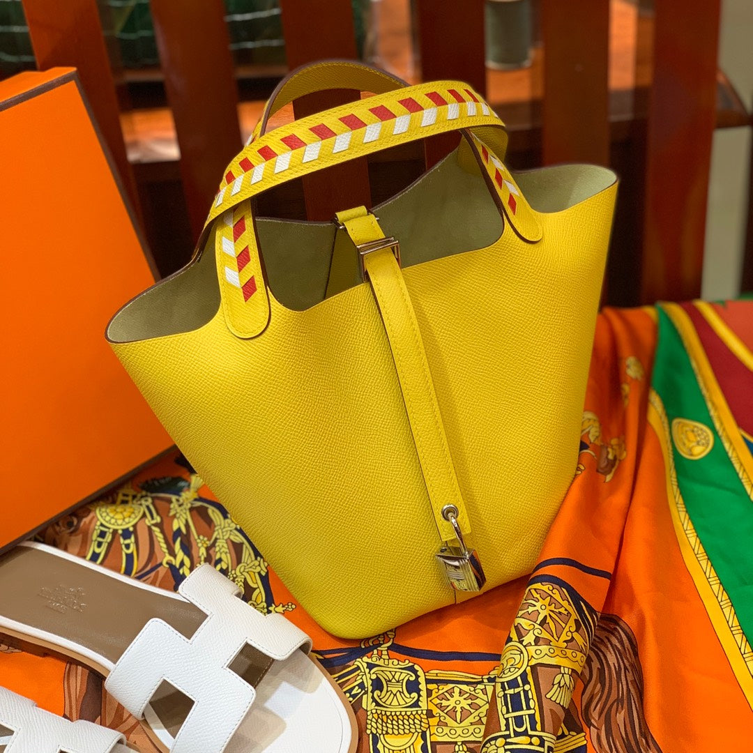 HM PICOTIN LOCK 22 LEMON EPSOM WITH BRAID STRAP
