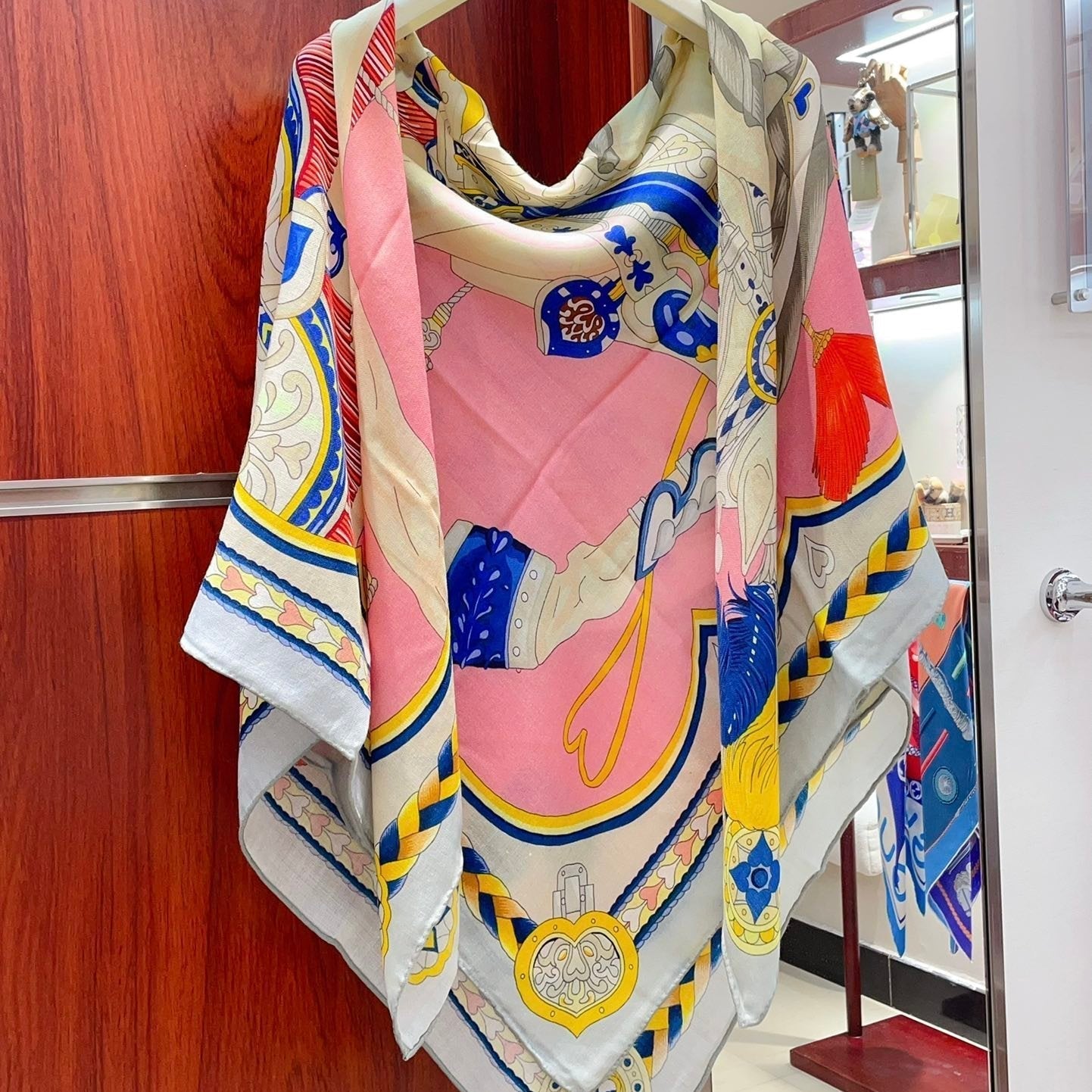 Carré Harnais De Cœur Scarf 140 CM In Pink Colorful Cashmere And Silk 335857