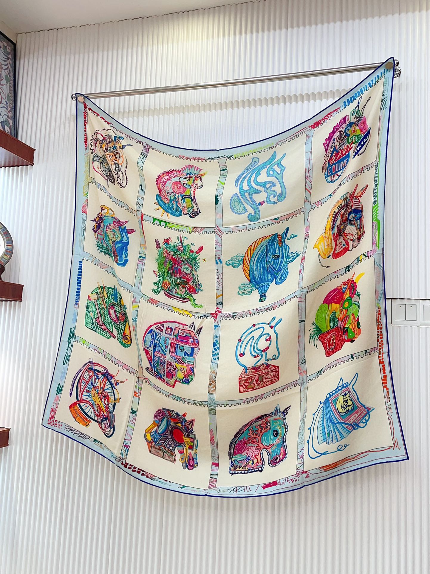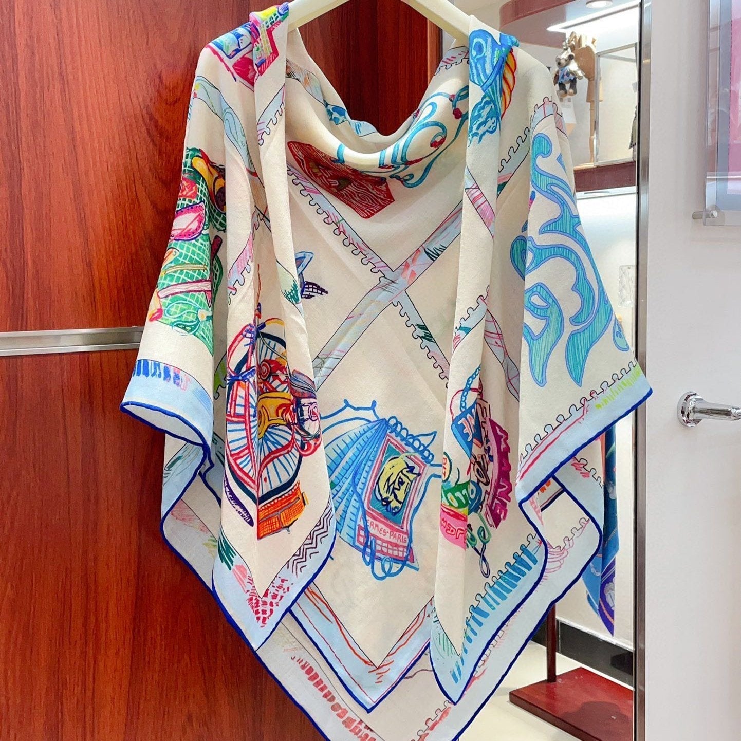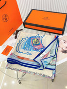Chevaloscope Scarf 140 CM In Light Blue Colorful Cashmere And Silk 373662