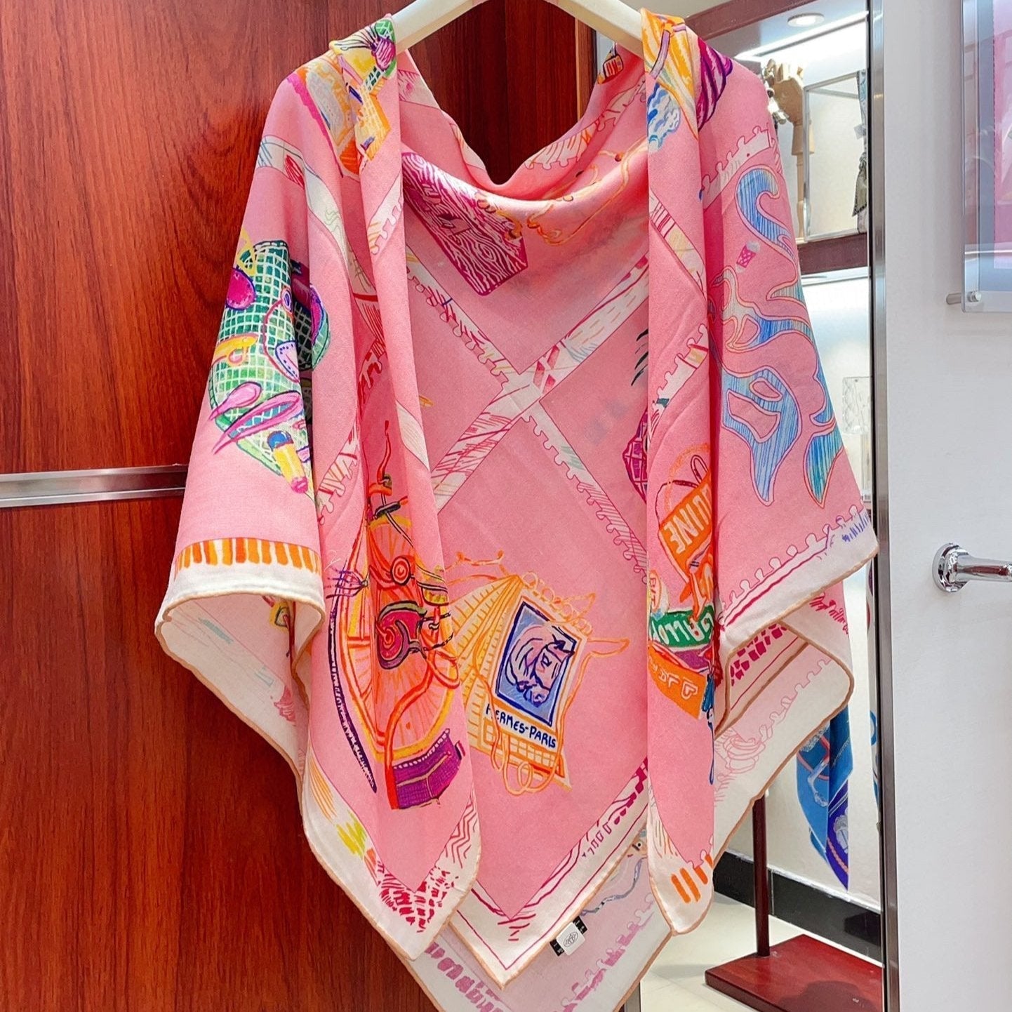 Chevaloscope Scarf 140 CM In Pink Colorful Cashmere And Silk 373660