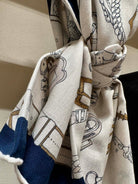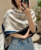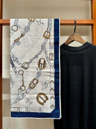 Chevaux Dechaines Shawl 135 CM IN Blue Purple Colorful Cashmere Silk 373687