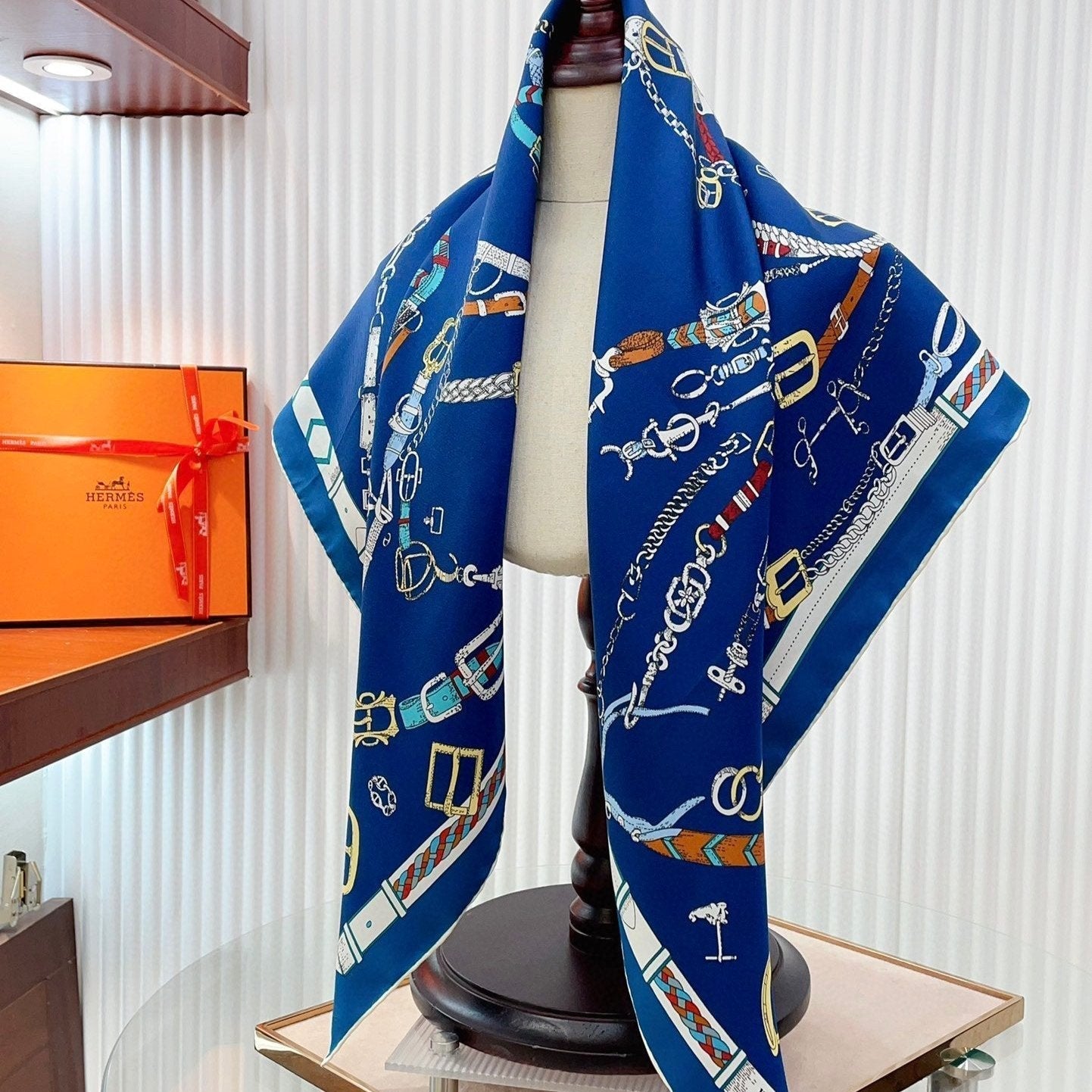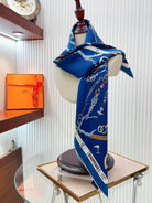 Chevaux Dechaines Shawl 90 CM In Dark Blue Colorful Silk Twill 201032