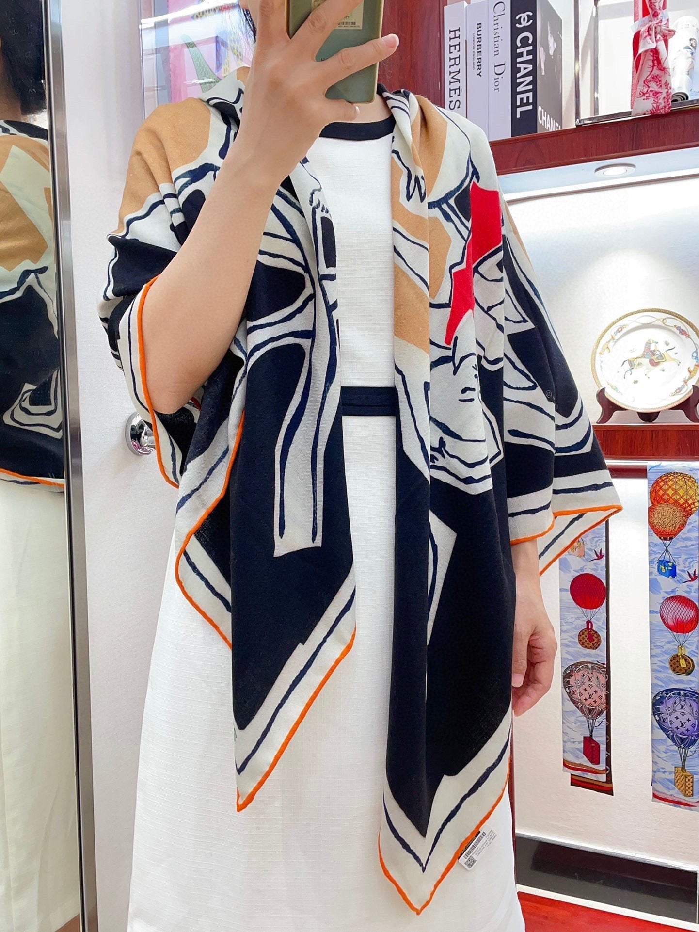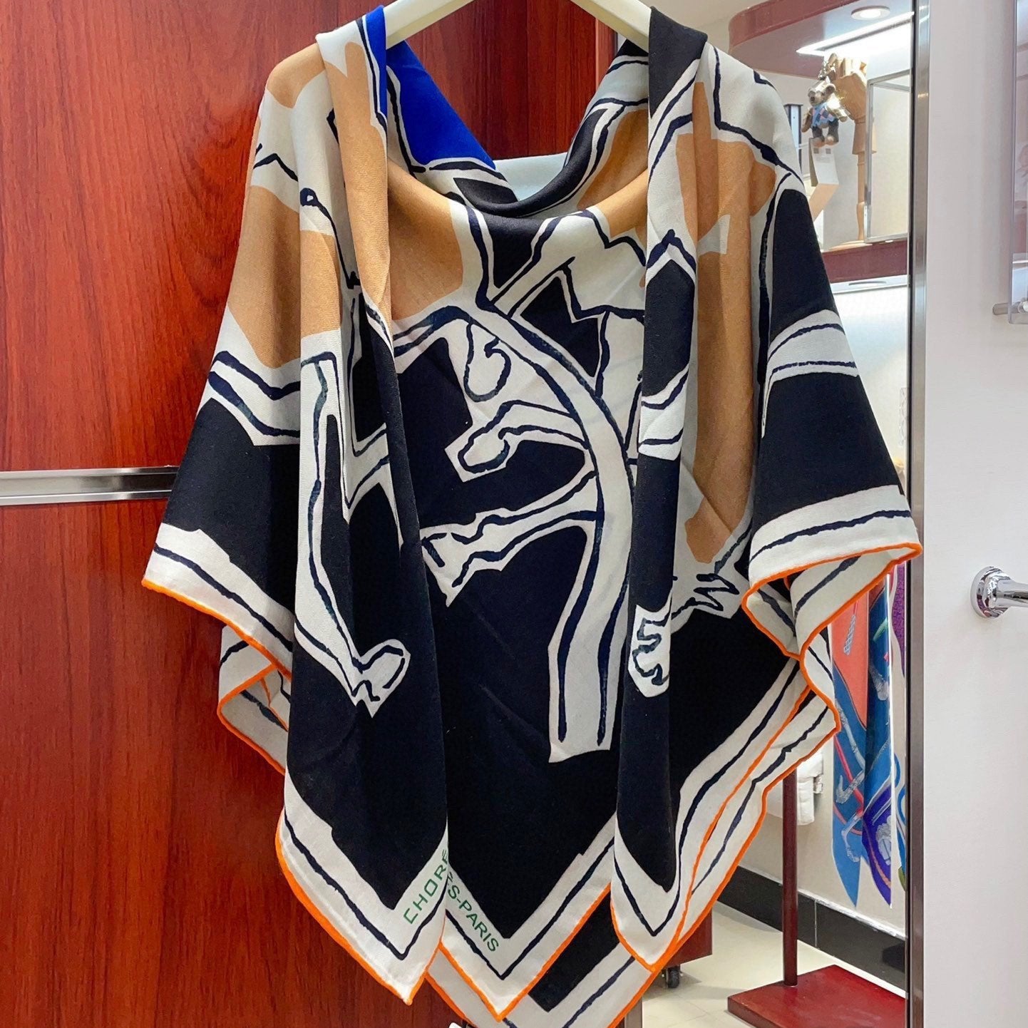 Choregraphie Equestre Pareo Scarf 140 CM Black Colorful Cashmere And Silk 393169