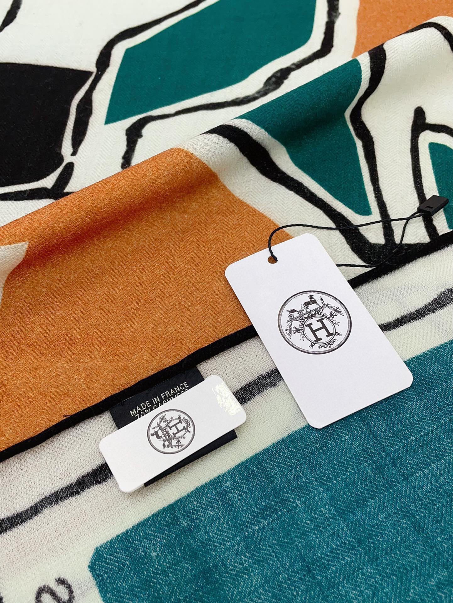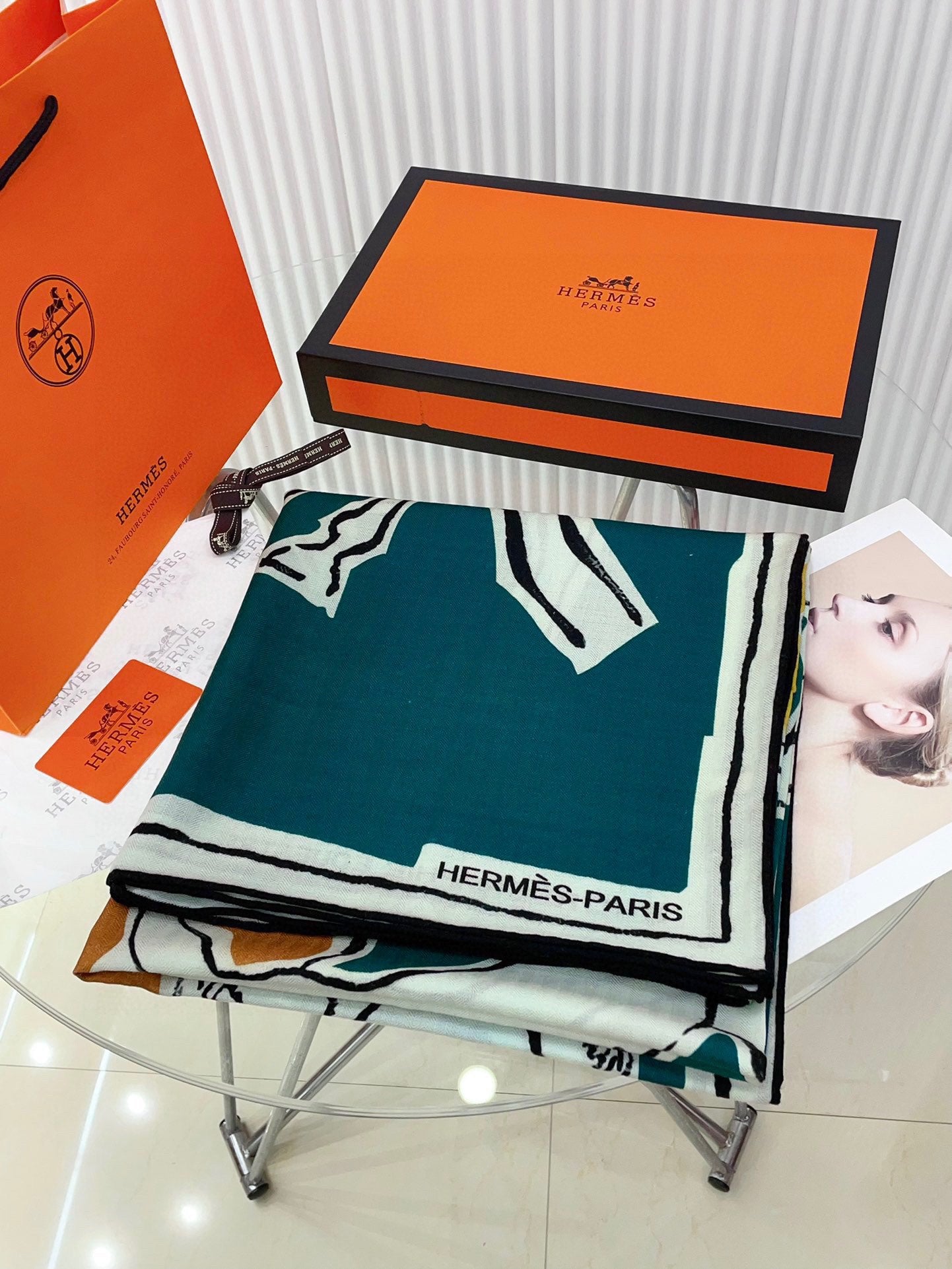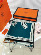 Choregraphie Equestre Pareo Scarf 140 CM Teal Blue Colorful Cashmere And Silk 393171