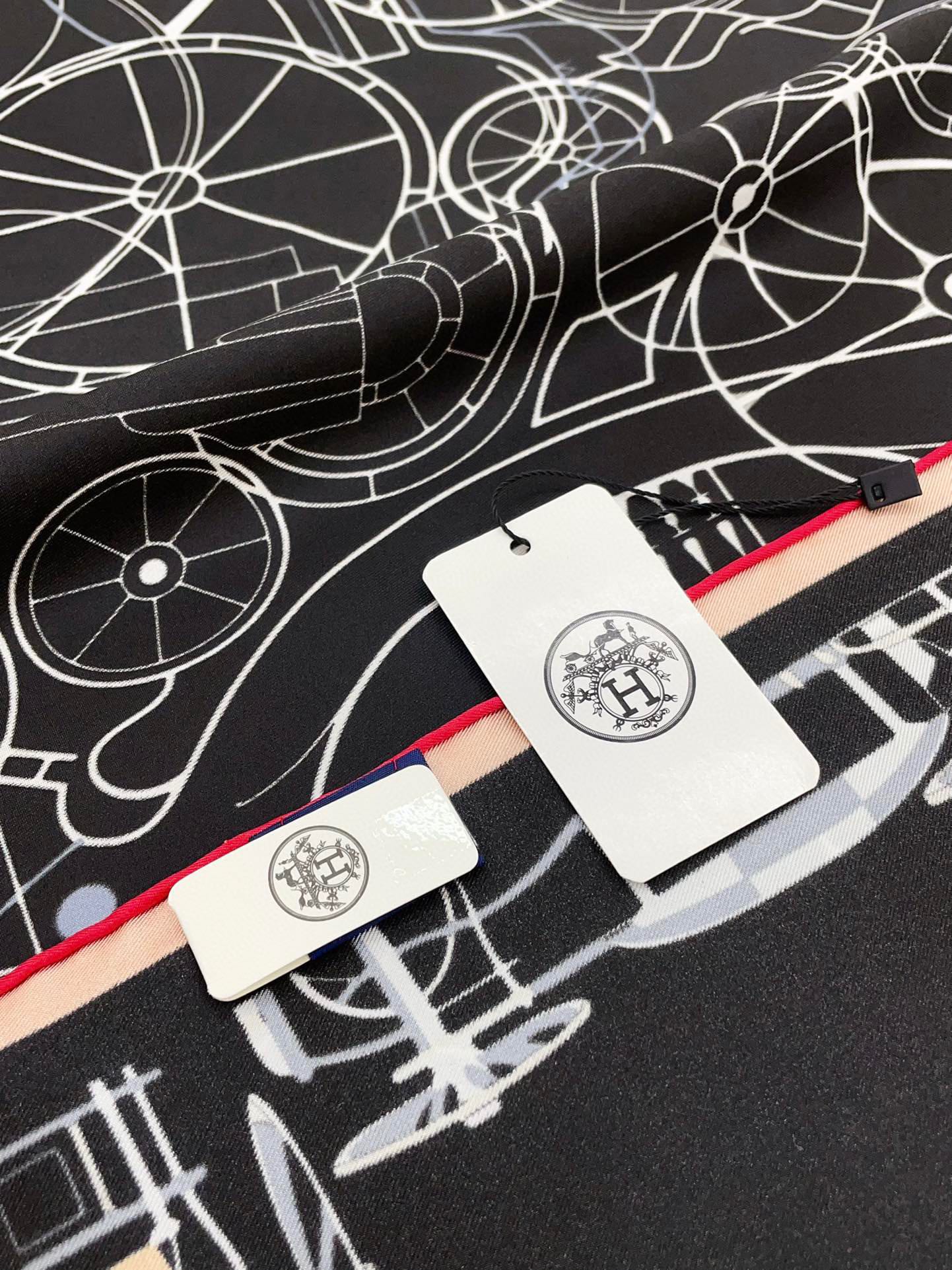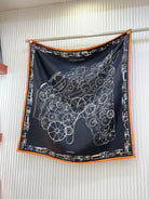 Complication Equestre Scarf 90 CM In Black Mix White Orange Silk Twill 345896