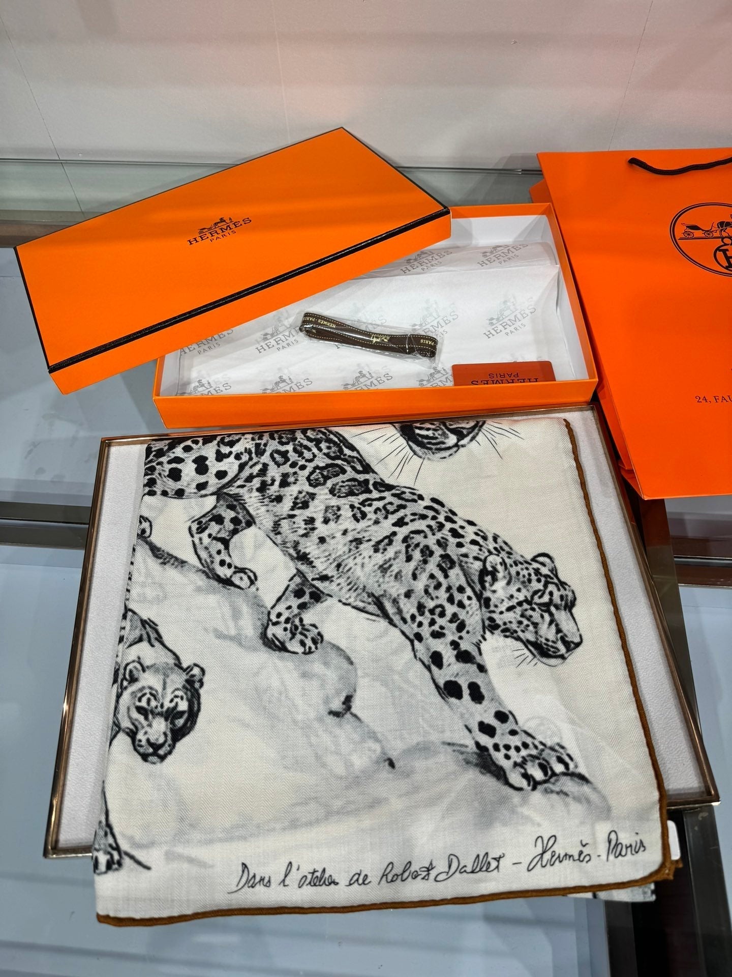 Dans L'atelier De Robert Dallet Sacrf 140 CM In White Black Cashmere And Mulberry Silk 379768