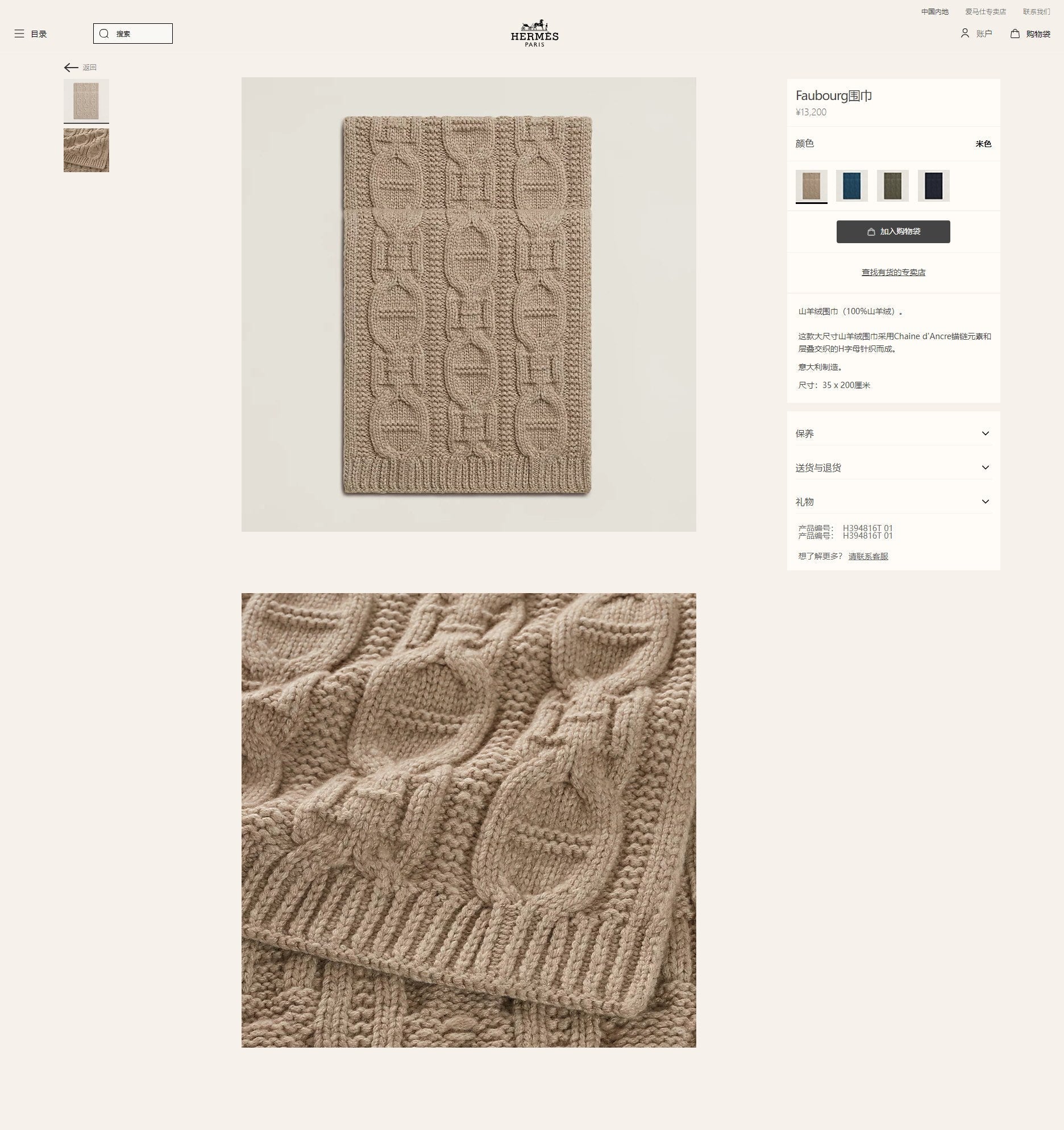 Faubourg Muffler Scarf 170 CM Beige Cashmere Handwoven 356201