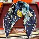 Flagship Silk Scarf 90 CM Charcoal Blue Colorful