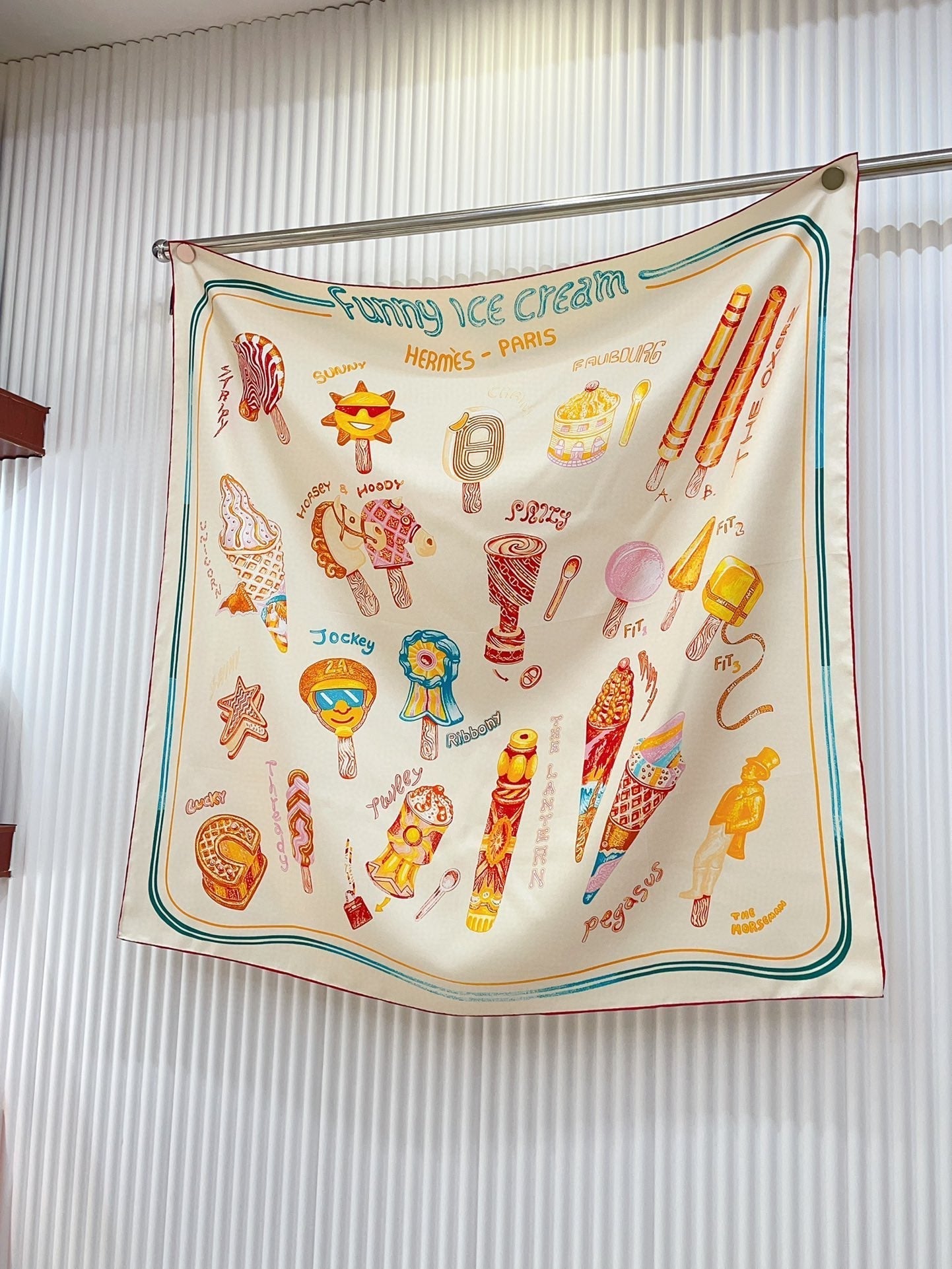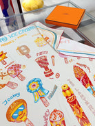 Funny Ice Cream Scarf 90 CM In White Colorful Silk Twill 300438
