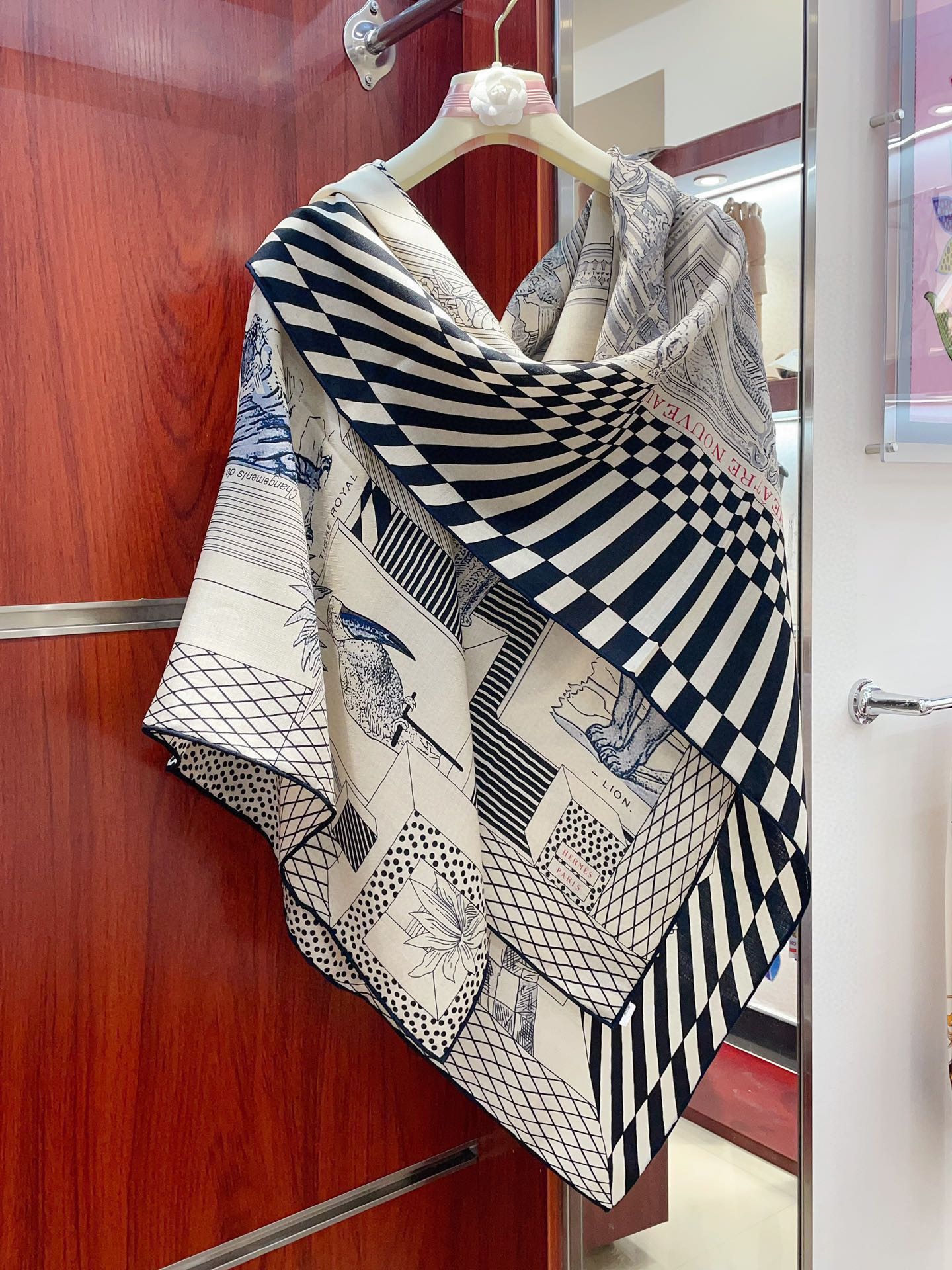 Grand Theatre Nouveau Scarf 135 CM In Black Colorful Cashmere And Silk 362249