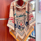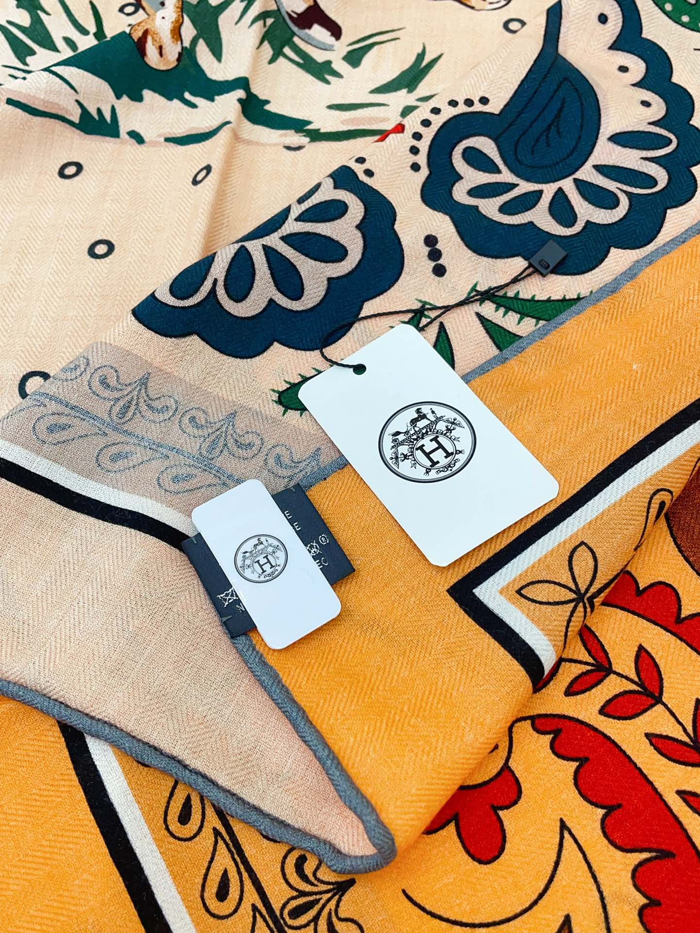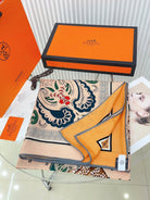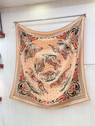 Guepards Bandana Double Face Scarf 140 CM In Beige Mix Orange Colorful Cashmere And Silk 334189