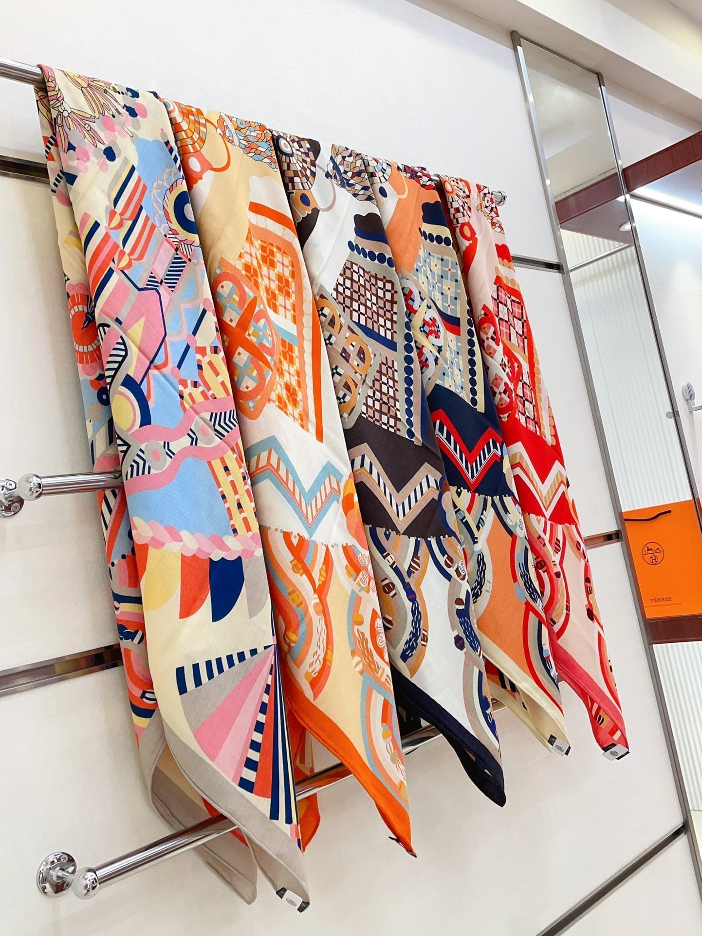 Haute Parure Scarf 135 CM In Red Colorful Cashmere And Silk 324751