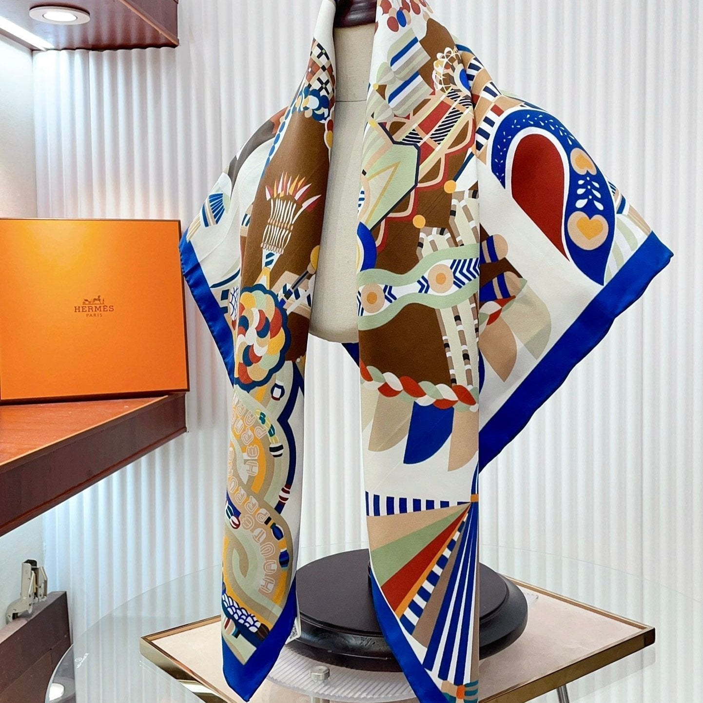 Haute Parure Scarf 90 CM In White Colorful Silk Twill 239533