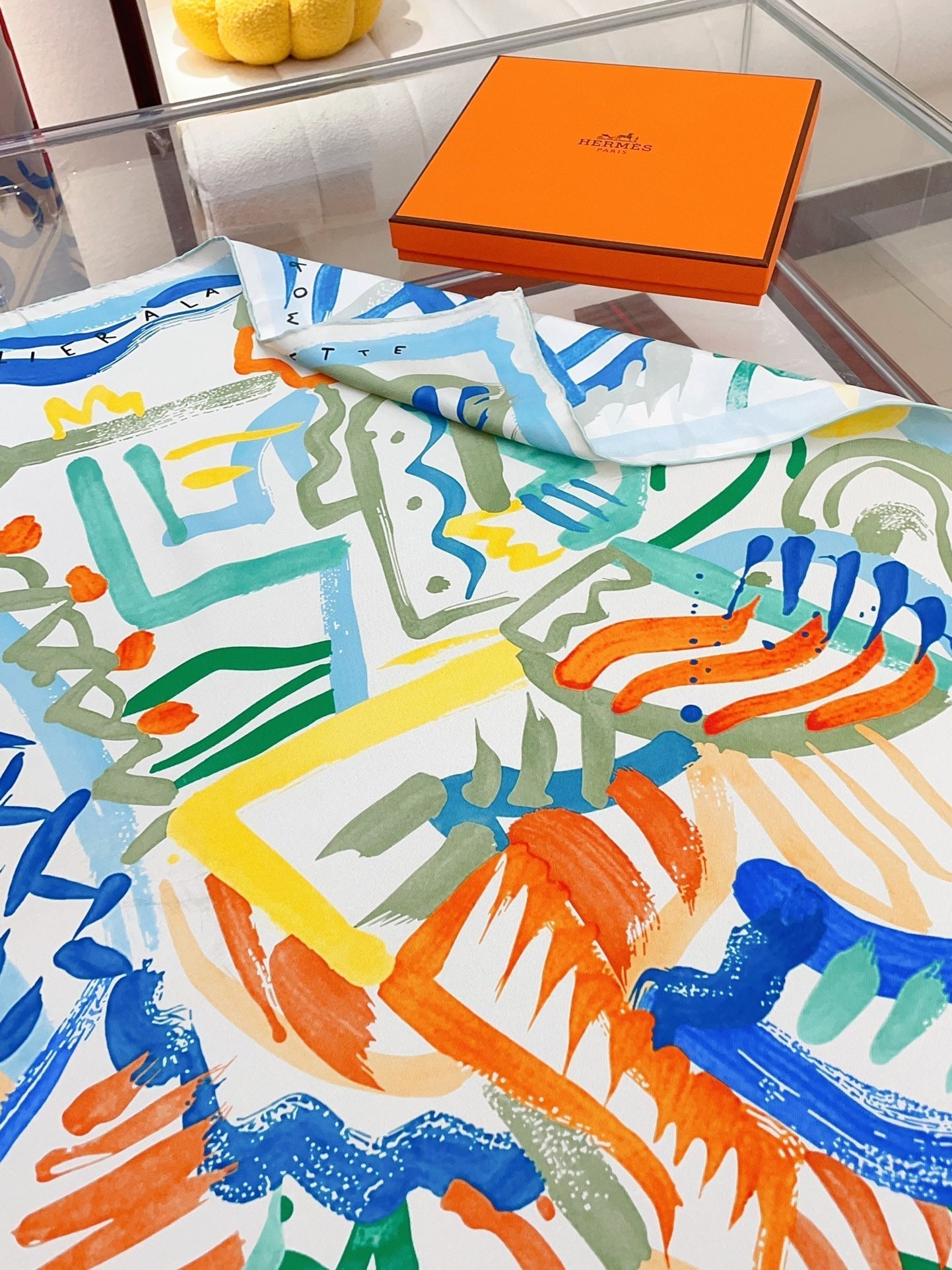 Le Cavalier A La Trompette Scarf 90 CM In Colorful Silk 208590