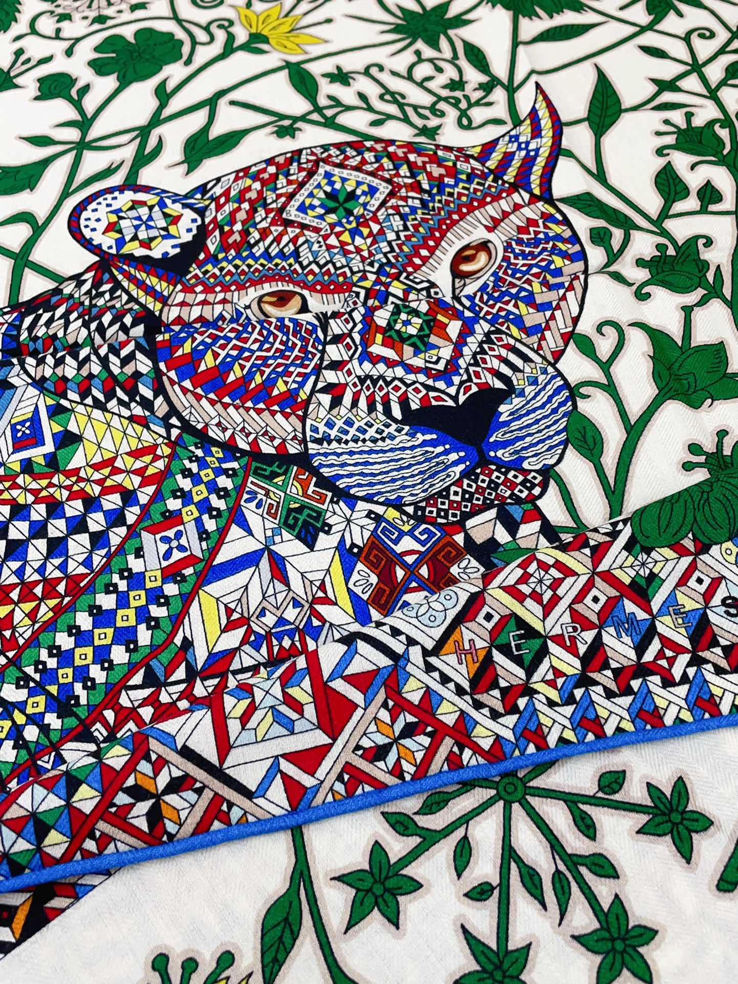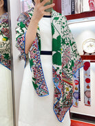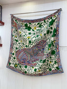 Le Jaguar Et Le Colibri Shawl 135 CM Green Colorful Cashmere And Silk 281676