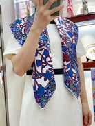 Le Jaguar Et Le Colibri Shawl 90 CM In Blue Colorful Silk Twill 274207