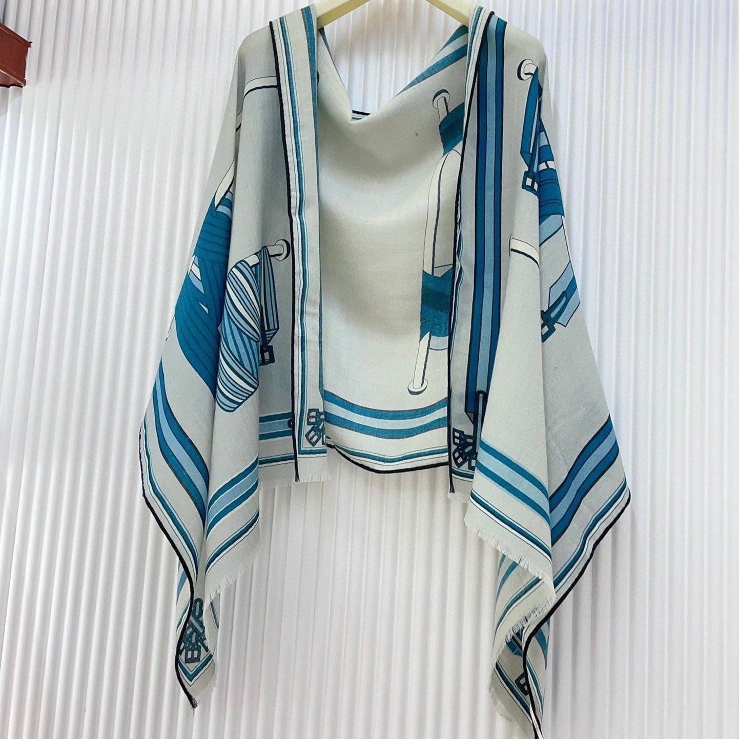 Les Sangles En Finesse Rectangle Scarf 180 CM In Light Blue Coloful Cashmere And Silk 373656