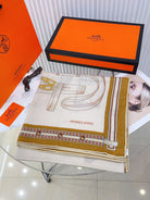 Lettres Equestres Shawl 140 CM White Colorful Cashmere And Silk 398259