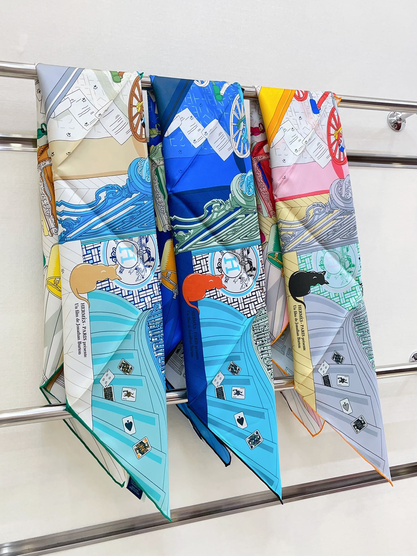 Mystere Au 24 Scarf 90 CM In Dark Blue Colorful Silk Twill 321935