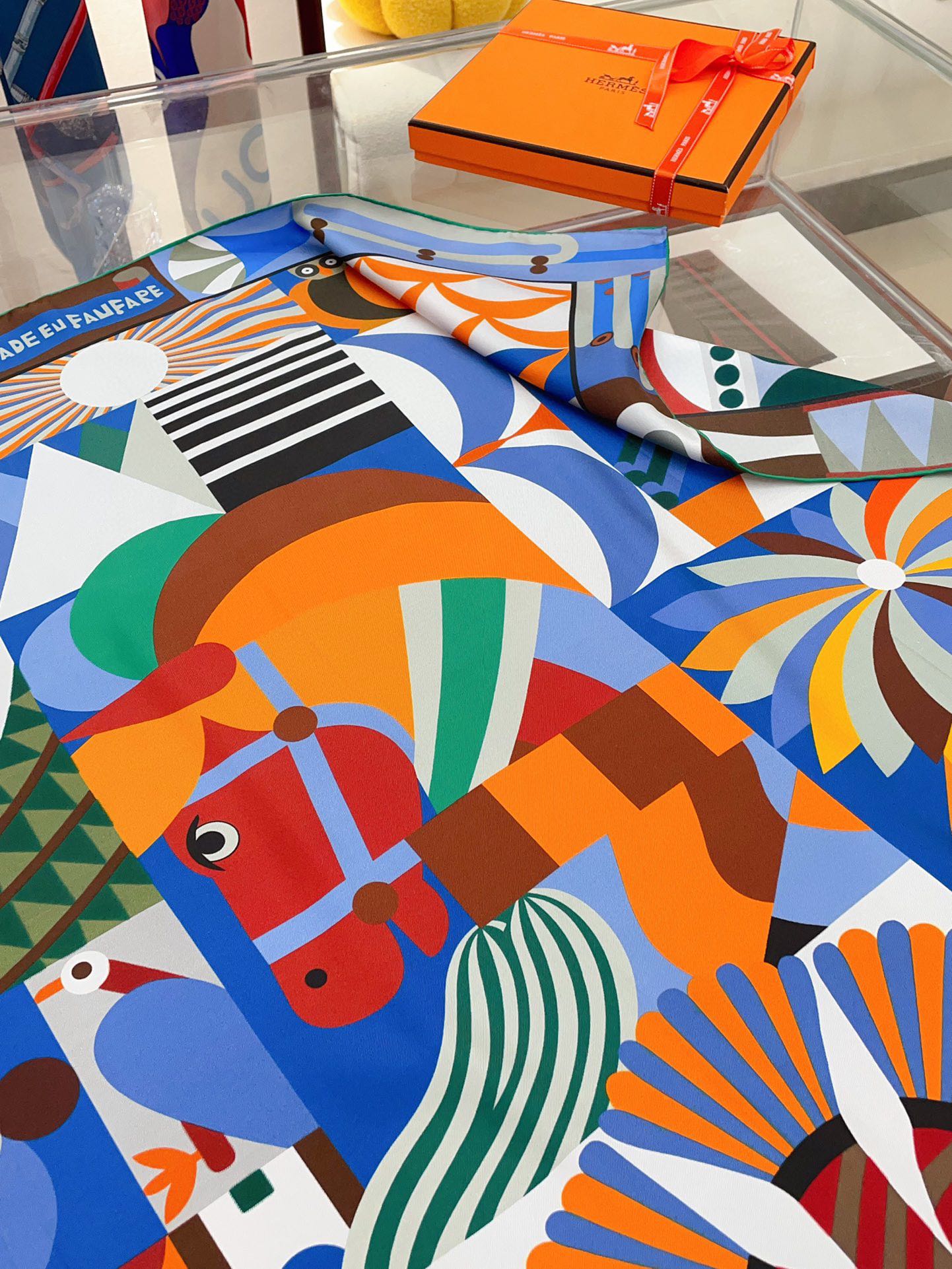 Parade en Fanfare Scarf 90 CM In Colorful Silk Twill 193838