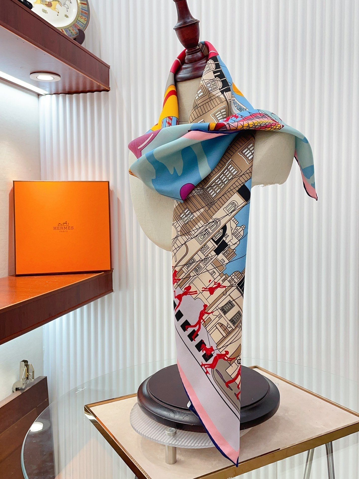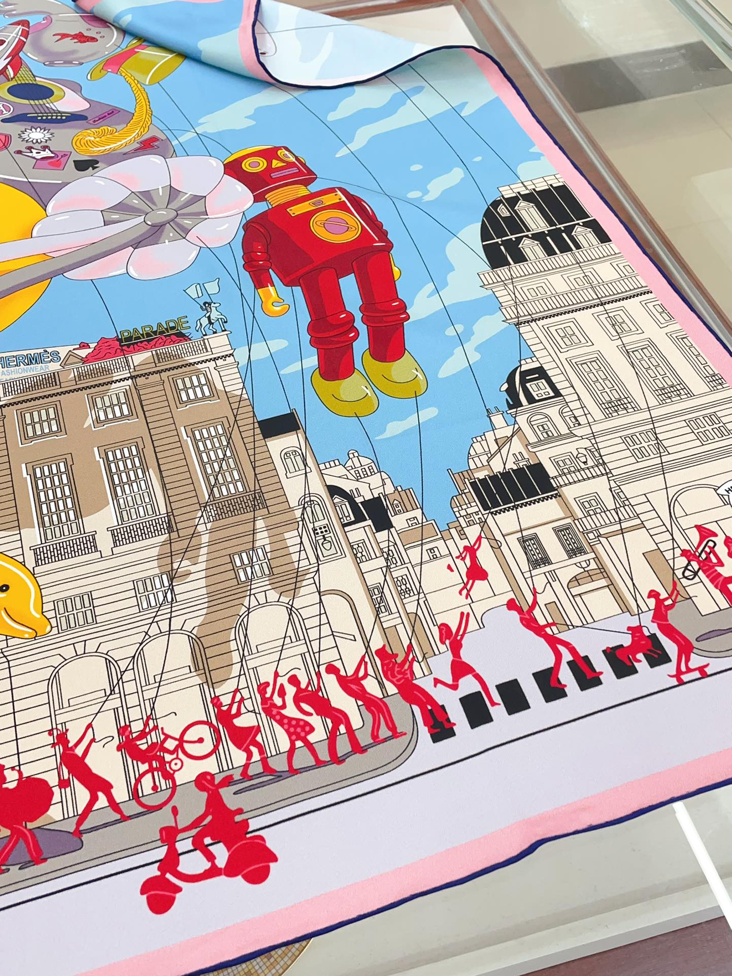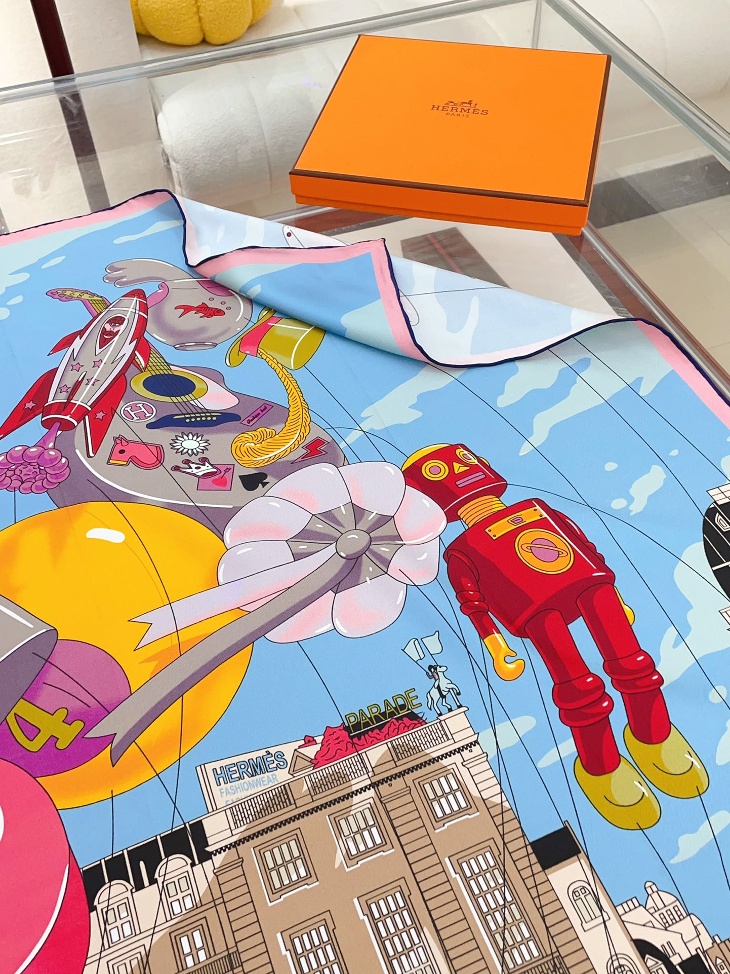 Parade Scarf 90 CM In Light Blue Colorful Silk Twill 310305