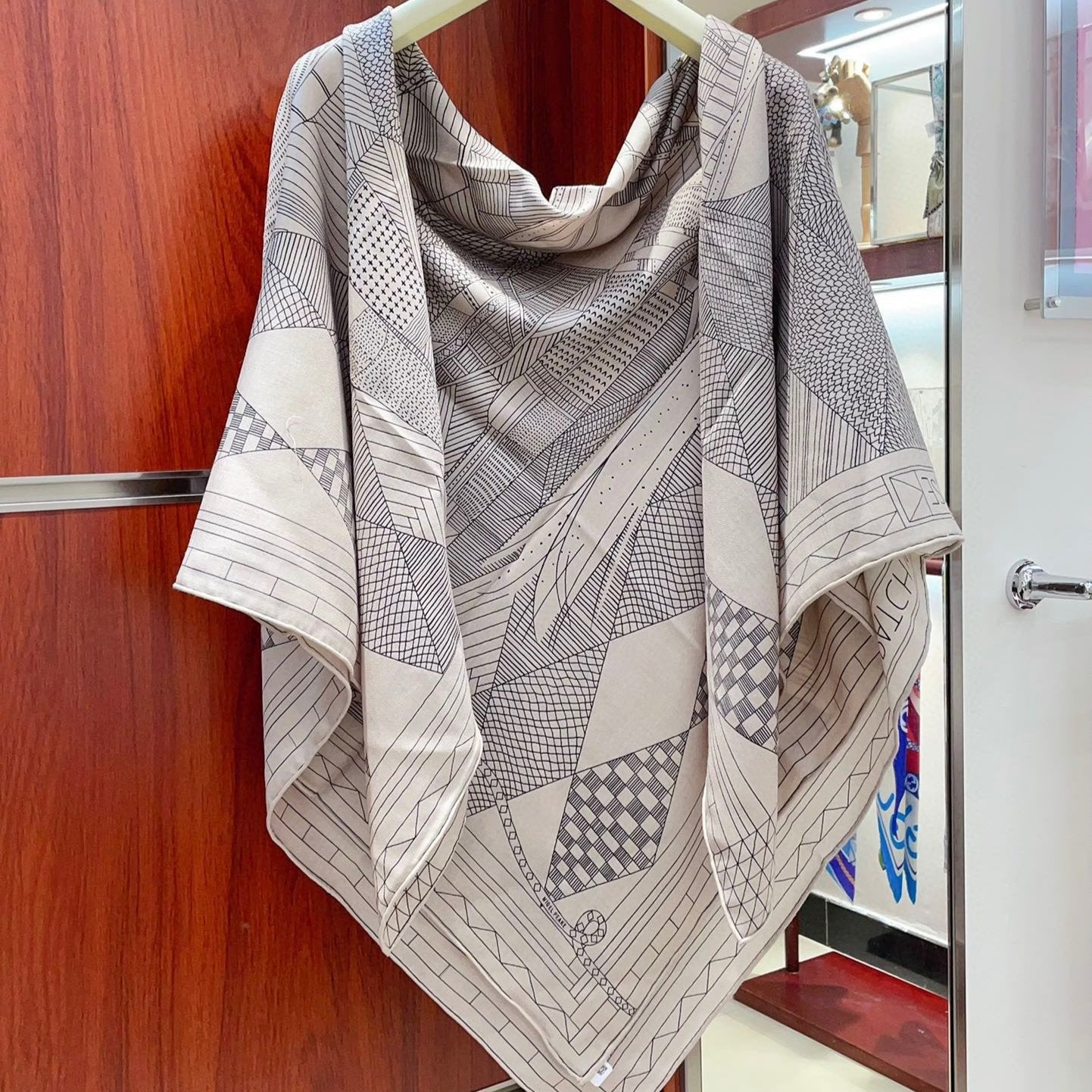 Patchwork Horse Shawl 140 CM In Grey Mix White Cashmere And Silk 350428