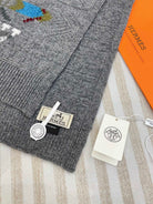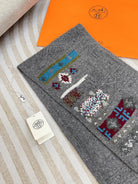Scarf 120 CM In Grey Black Hand Woven Cashmere 401167